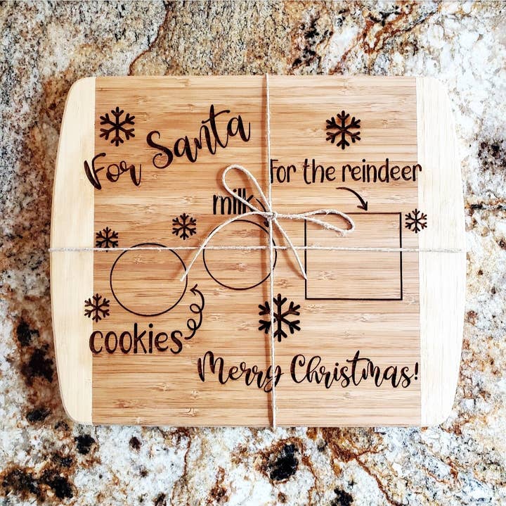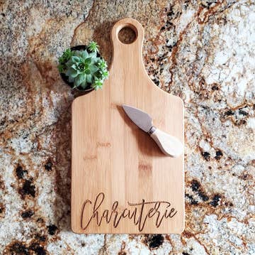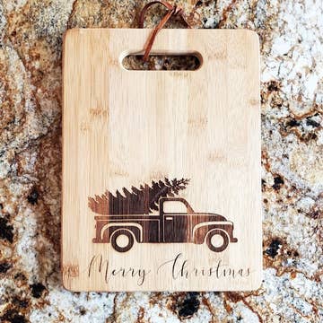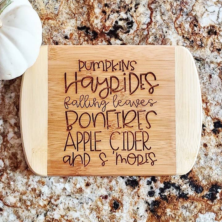 Shown in our small 2 tone cutting board. Made from bamboo. Available in 5 sizes. For care and cleaning, wipe with a damp cloth. Cooking grade mineral oil can be used to bring back original shine as needed. Please note: Each board coloring will vary per piece. Some boards may engrave darker than others, but the engraving depth will remain the same due to the same settings being used. * Most of our cutting boards are made outside the US and then engraved/personalized in our shop in San Diego, CA.