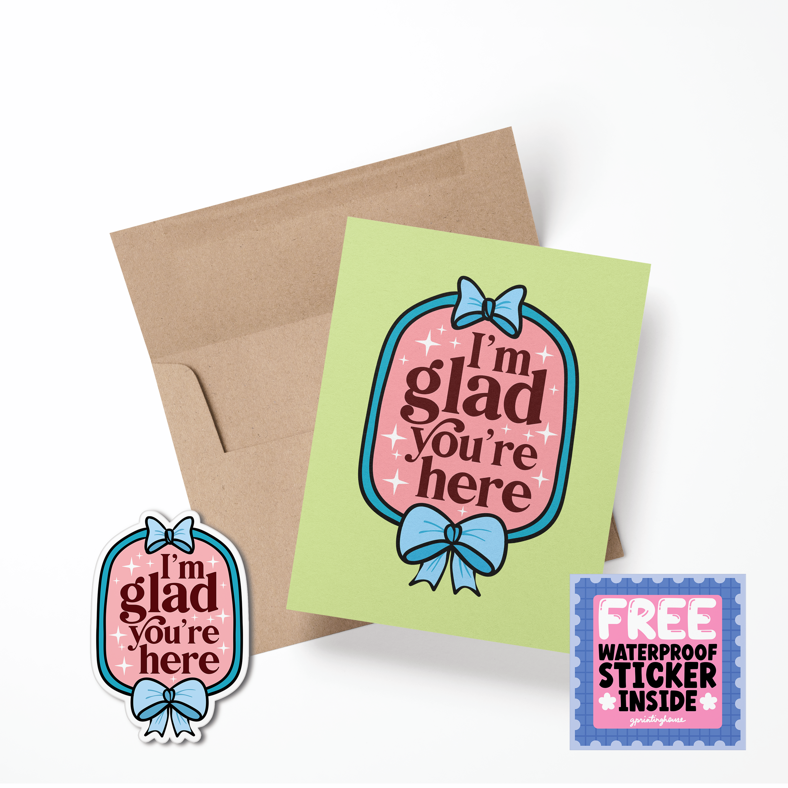 -Say Hello with this offset printed full-color greeting -Printed on 100% recycled paper stock -Paired with a corresponding printed envelope -Card is blank on the inside -Measures 5.5" x 4.25" (A2 size) -Lovingly printed at a local Cleveland print shop -Packaged in a clear plastic sleeve