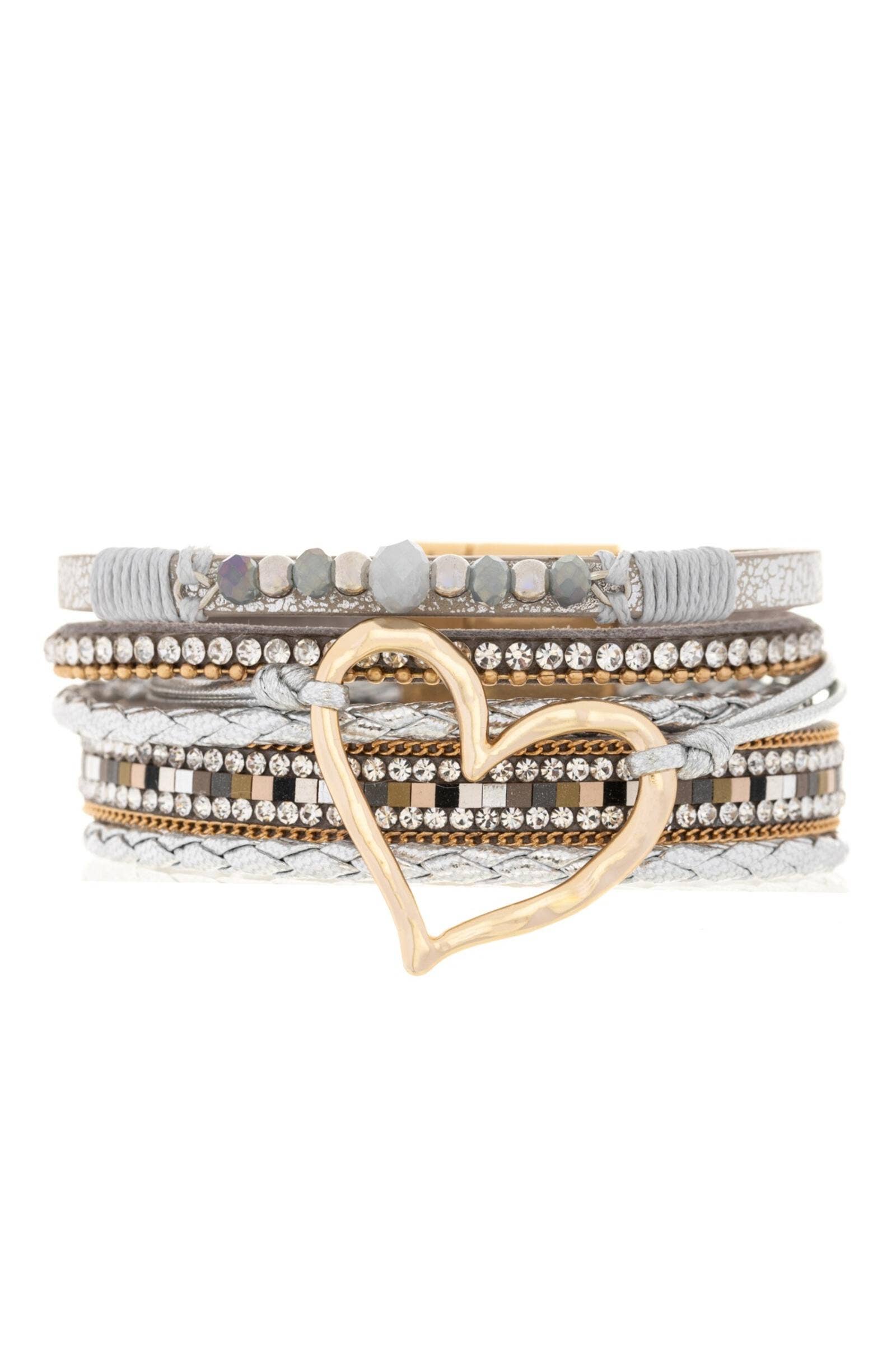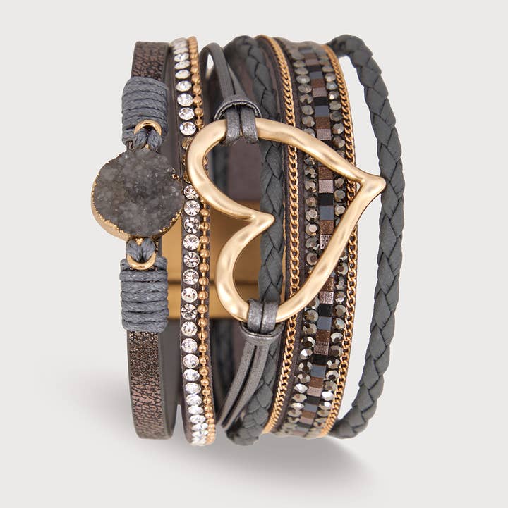 Vegan Leather Golden Heart Beaded Bracelet