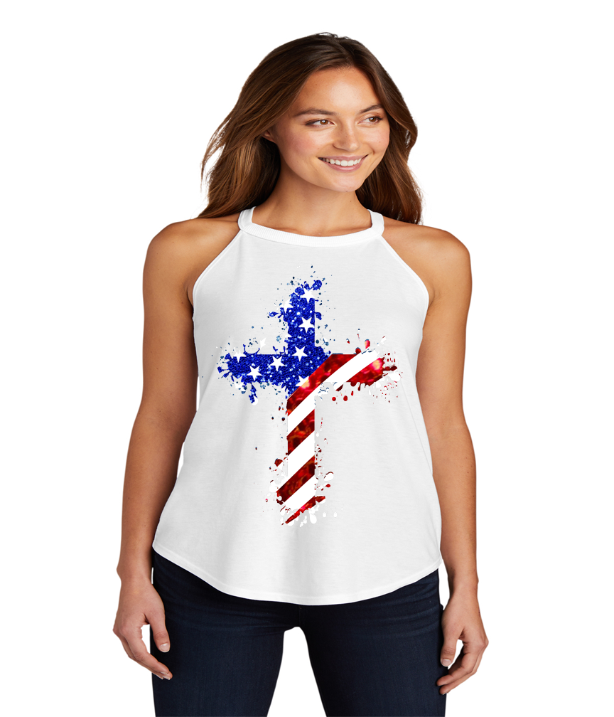 USA Flag Cross Christian Print Graphic Tank Top STC125D50