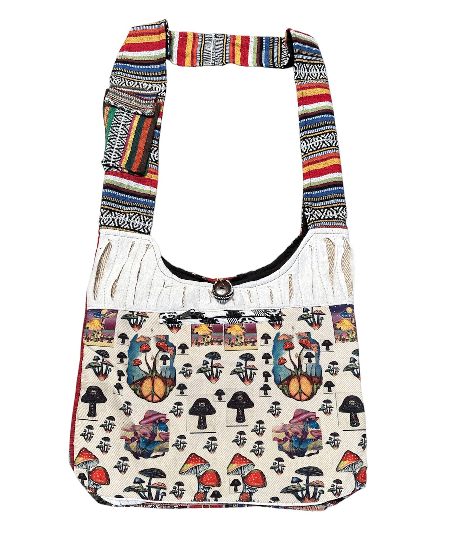 This practical messenger bags is perfect to carry your essentials within easy reach. It has a top zip closure, one exterior and one interior zip pocket. Fully lined. Made of 100% sustainable cotton with faux suede trim. Adjustable removable strap. Made in Nepal. Introducing our stylish and versatile Owl Hobo/ Messenger Crossbody bag, meticulously crafted and fully lined for durability and functionality. This bag is the epitome of fashion-meets-function, offering ample space to carry your essentials while keeping you organized on the go. Handcrafted with care in Nepal, each bag embodies a blend of traditional craftsmanship and contemporary design.