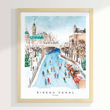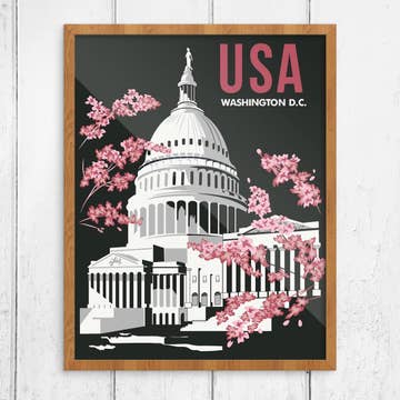 8W x 10H inch art print, a giant panda bear kayaking in front of the Lincoln Memorial in Washington, D.C.