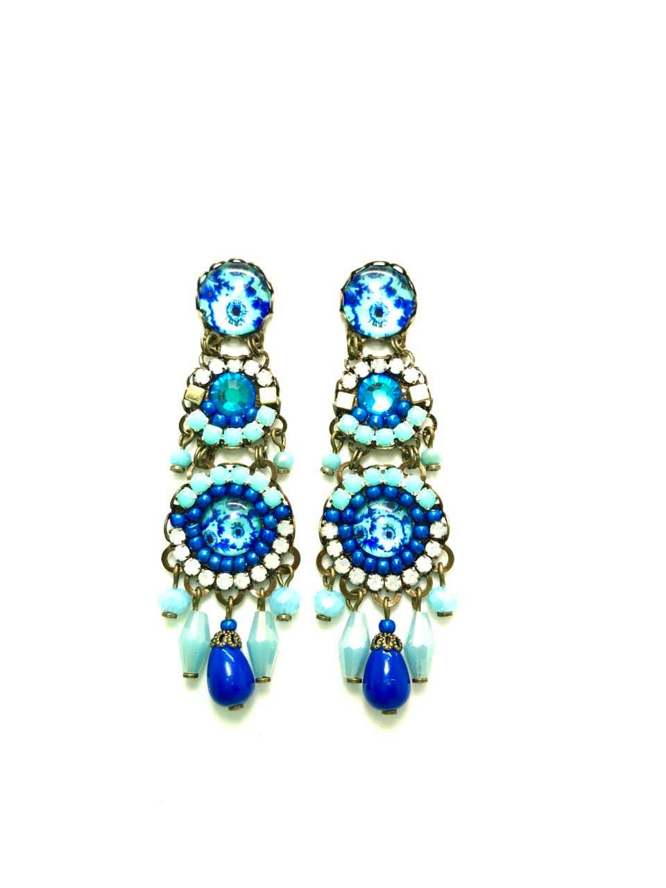 HANDMADE EARRINGS WITH SOFT-COLORED CRYSTALS, MEDIUM SIZE, FOR PIERCED EARS, LENGTH 3.5 CM