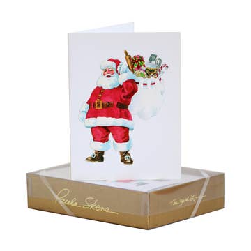 Winter Santa mini enclosure card is accented with hand painted touches of sparkling glitter. Made in the USA, this 3" x 3" blank inside card leaves room for you to write your own little message. It comes to you packaged individually with the envelope enclosed.