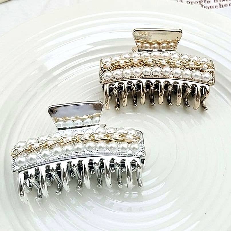 Shiny Crystal and Pearl Hair Tie Set