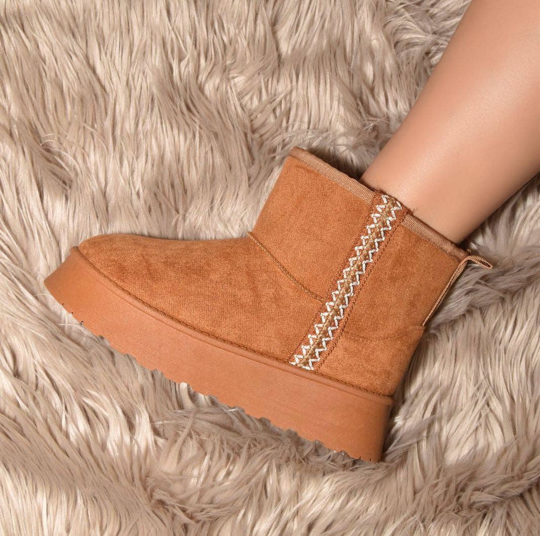 Wholesale Wild Diva OKURA-06 Embroidered Trim Fleece Fur Lining Cozy Snow Slipper Booties