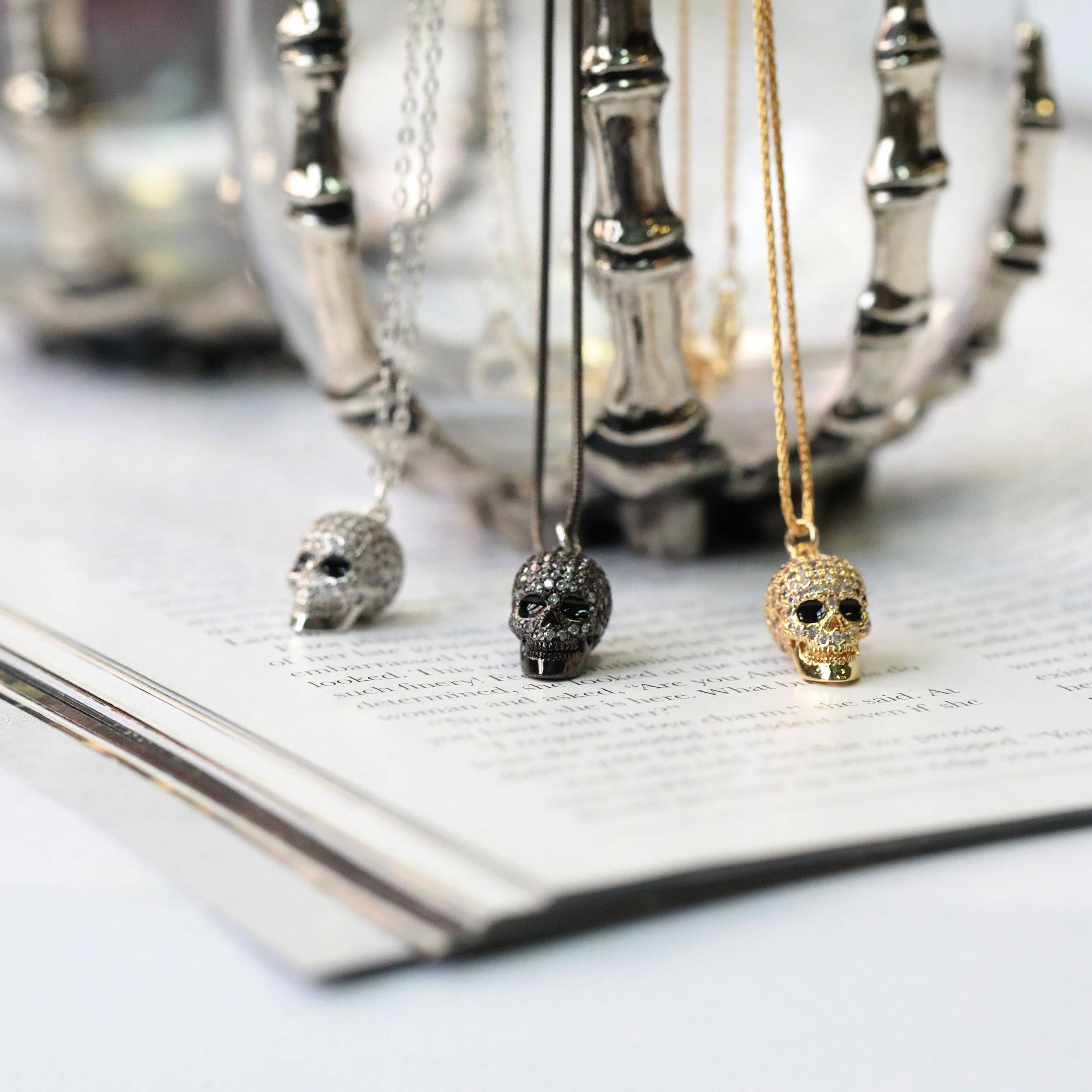 Memento Mori serves to remind us that death is an inevitable part of life. Let this skull remind you of a passed loved one, or simply that life is meant to be cherished and held, no matter how brief it can be. Available in sterling silver, or solid brass on 18” chains (sterling silver or gold filled).