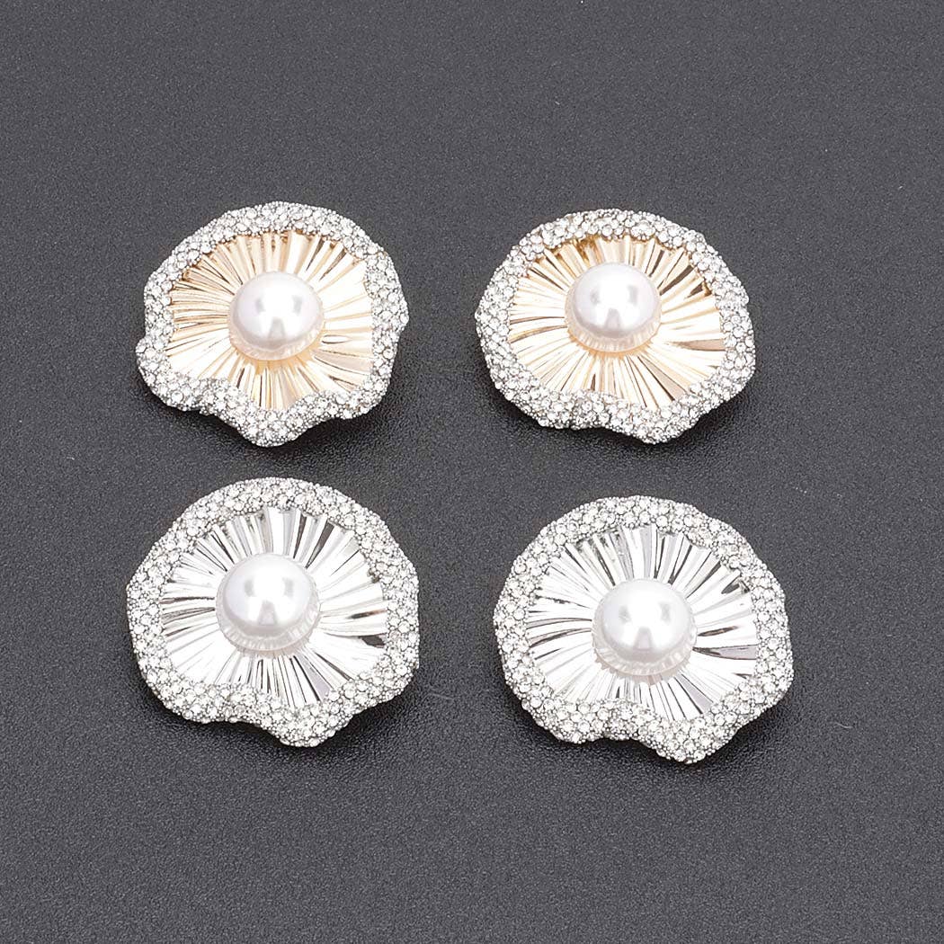 Etched Shell and Freshwater Pearl Stud Earring Stainless Post White or Pink 1/2" diamater