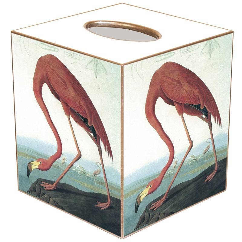 Our decoupage tissue box covers are handmade to order by our wonderful team in Houston, TX. They easily slide over any cubed tissue box cover. The artwork is hand-cut, decoupaged, and polished. Each tissue box cover is hand painted in gold or silver around the edges as the finishing touch. We offer 3 materials for the tissue box covers: 1. Papier Mache: $19 Dimensions: 5.5” H x 5” W x 5” L 2. Wood: $30 Dimensions: 5.25” H X 5” W X 5” L 3. Tin: $30 Dimensions: 5.75” H x 5.125” W x 5.125” L