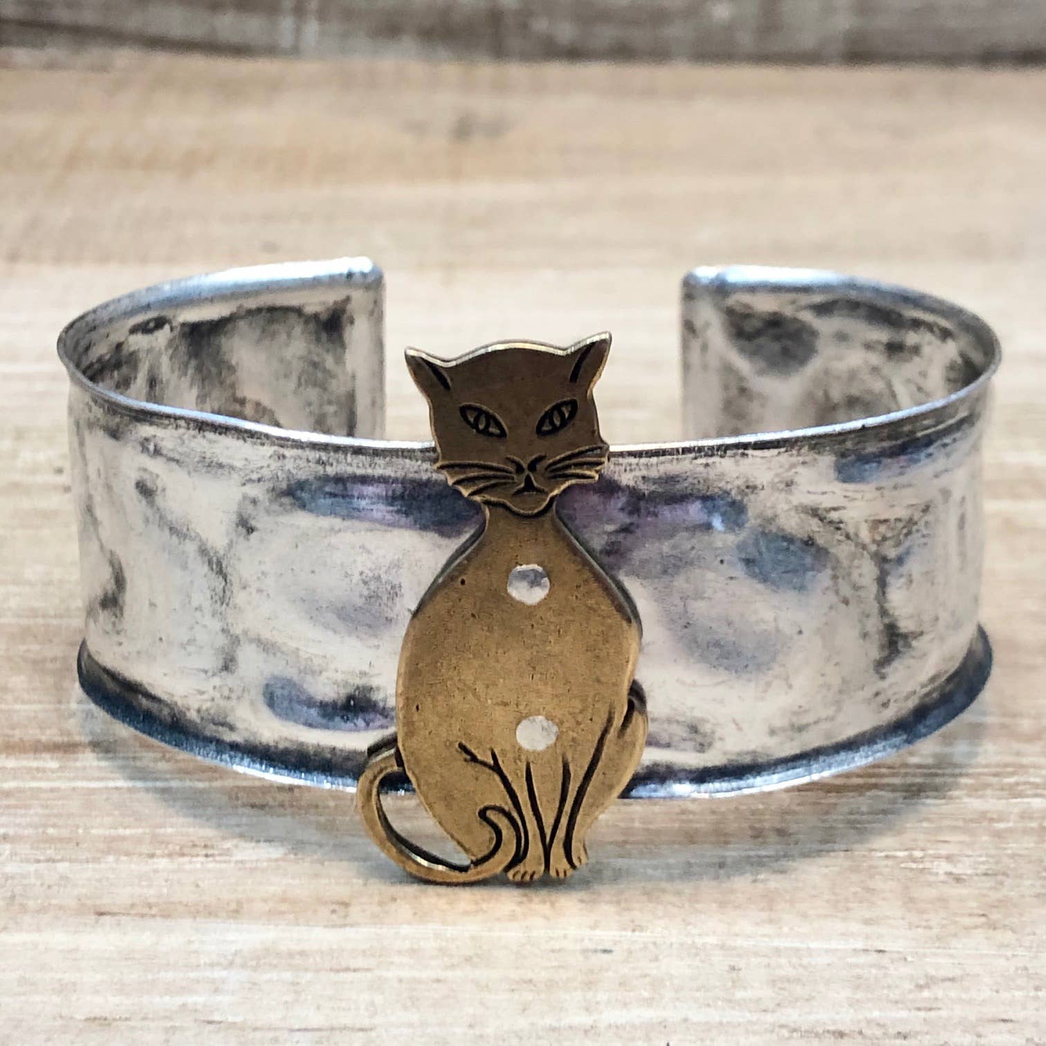 Our Sweet Cat Silhouette Necklace With Crystal features a classically posed sitting cat, embellished with genuine Swarovski Austrian Crystal. Choose from pretty green or blue eyes. We add a little collar just for fun. Solid brass cat with an antique brass finish. Your choice of an antique brass or antique silver 18" rope chain. Cat measures 1 1/2" x 3/4".