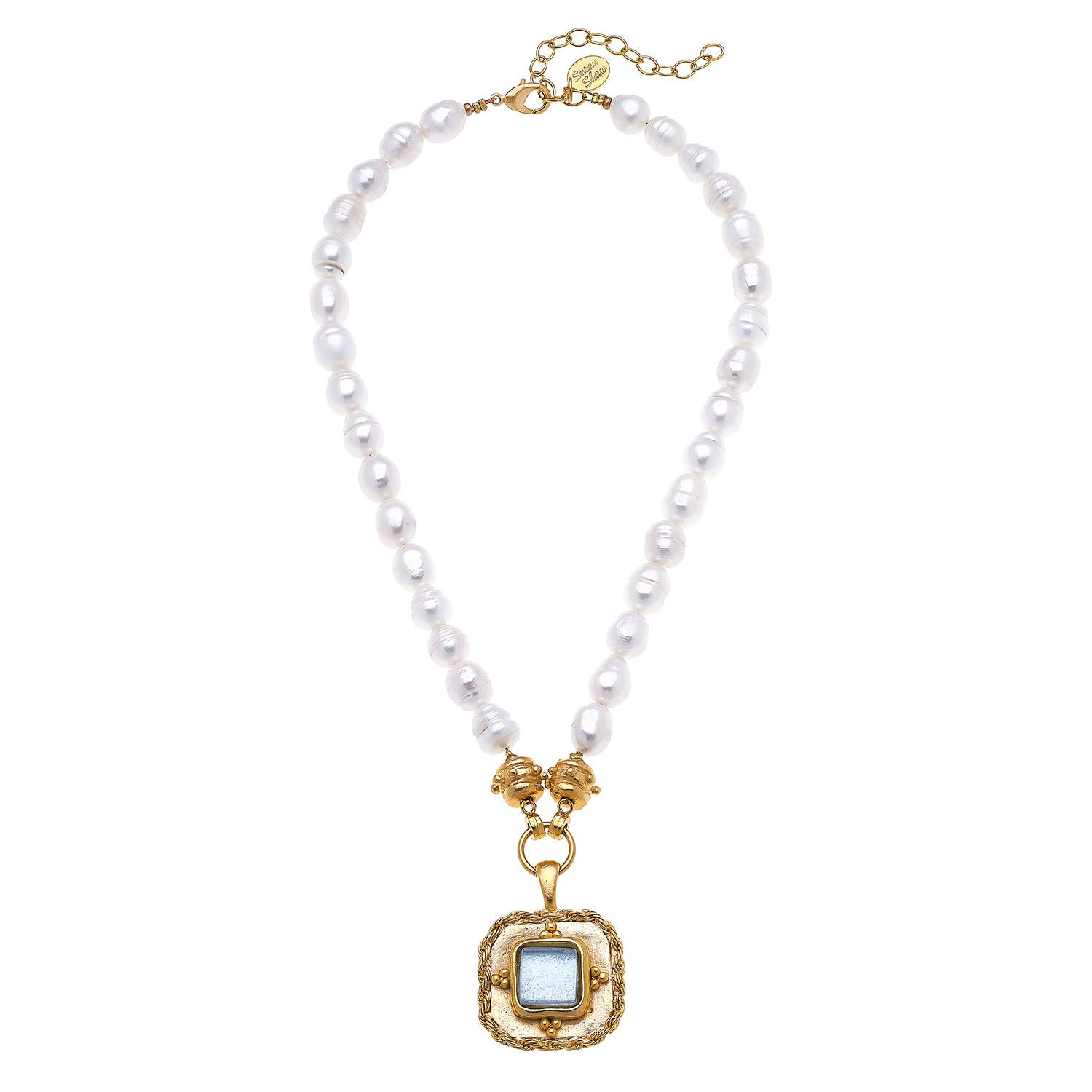 Square Pearl Glass Charm Cluster Short Necklace