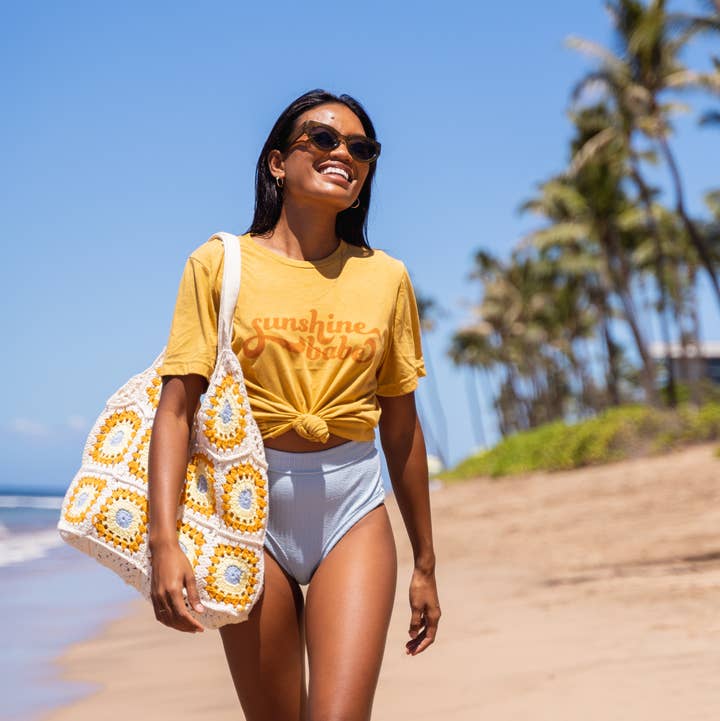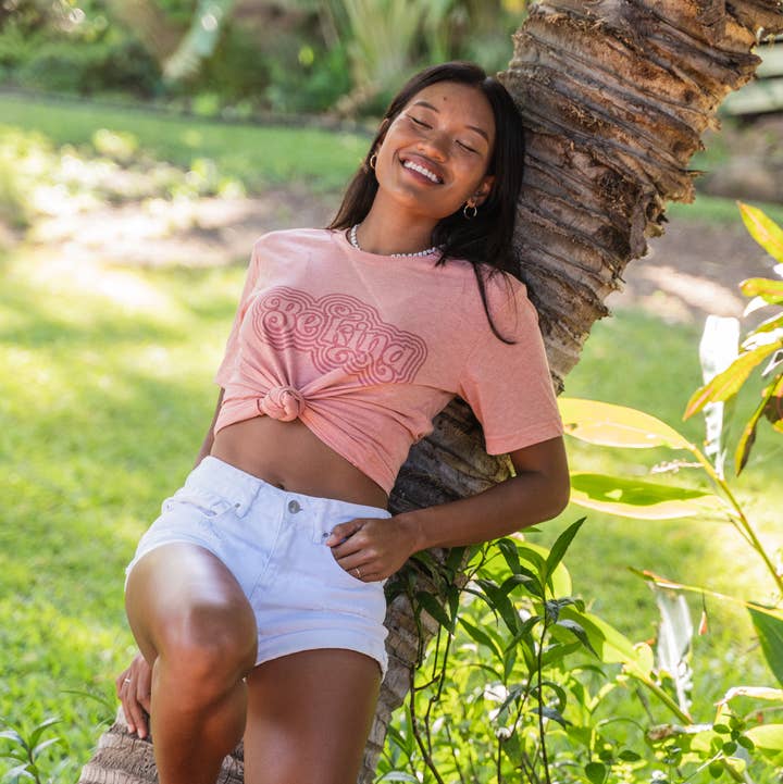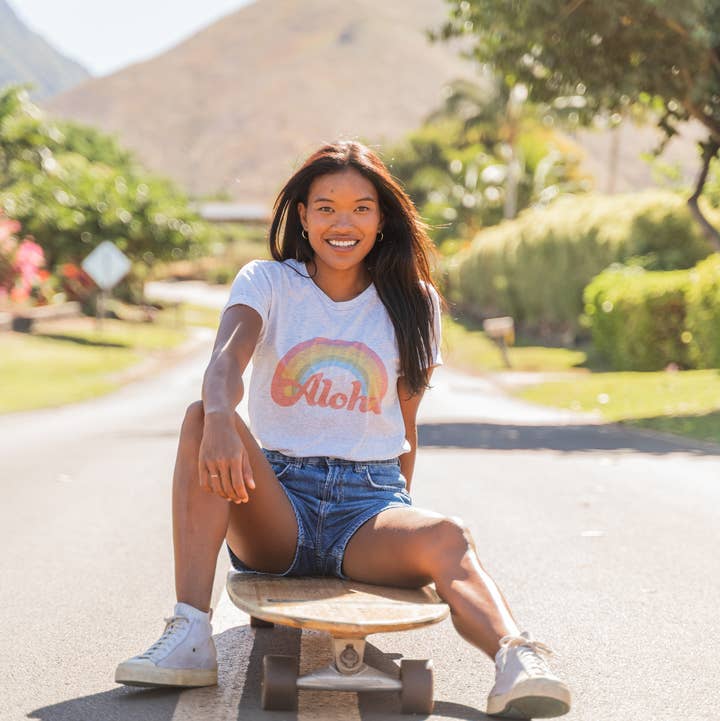 Feel empowered in our Wahine Rainbow Tee. It's extra soft and the perfect relaxed-fit. This is a unisex tee, not fitted. So be sure to check the size guide for your perfect fit. Made to order with 50% polyester, 25% combed ring-spun cotton, and 25% rayon. Model is wearing a small. * This tee is created with love in my home studio with high-quality materials. It is printed using sublimation, where the ink is infused directly into the fabric. This technique produced a more vintage, faded look. The design is integrated into the fabric so you will see the original fabric colors and texture come through on the design. Please refer to the video to see a close-up of what this looks like.