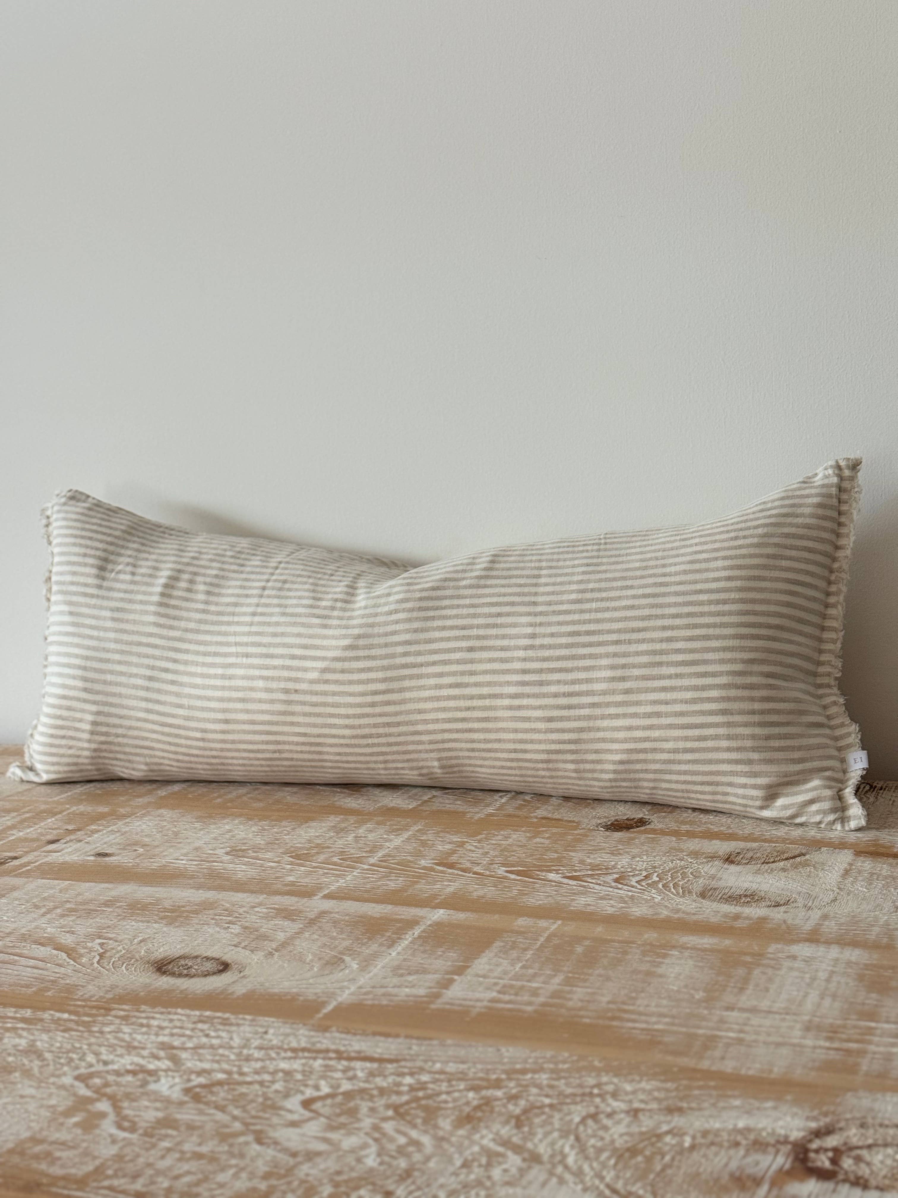 Esmee Linen Cushion Cover – Frayed Edge Olive Stripe