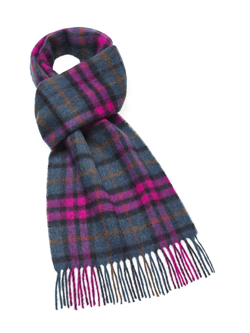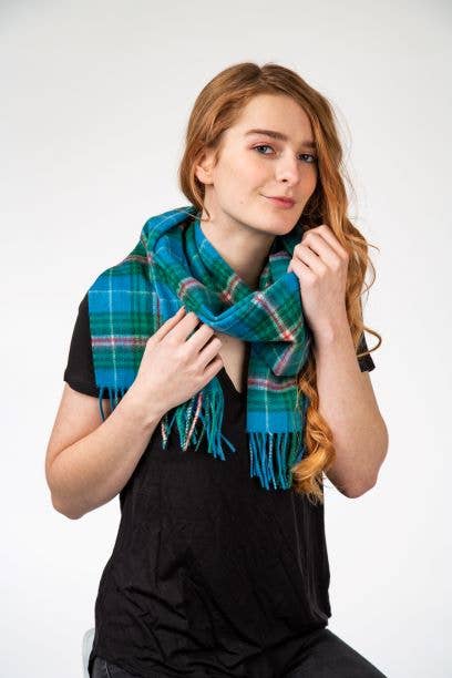 A beautiful, soft, and warm 100% lambswool scarf from Patrick King Edinburgh Lambswool collection. Wear your favorite tartan or check design all year round! Measures approximately 12" wide, scarf length at least 5" long with a 3"fringe on either end. Size: 30 cm x 140 cm.