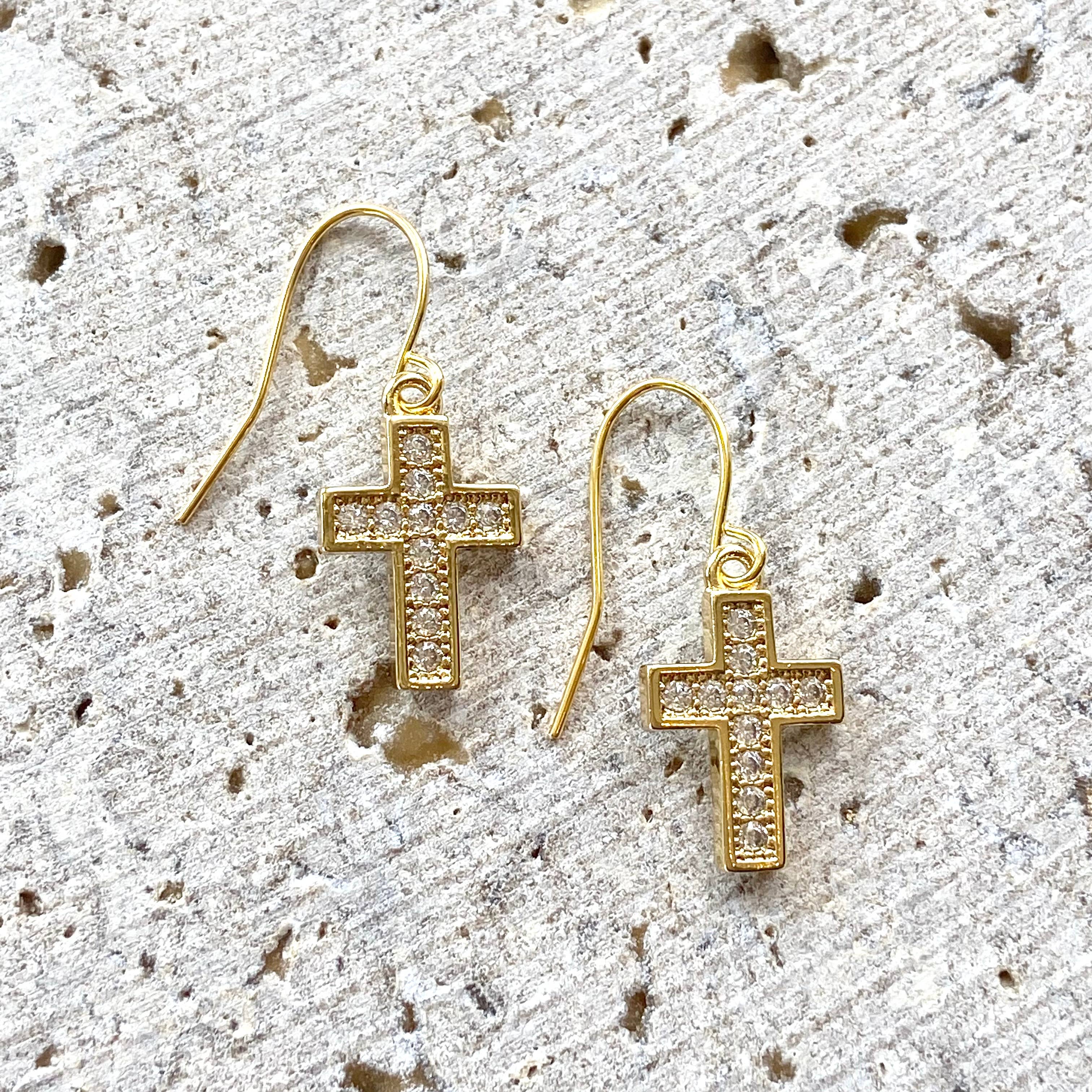 Brushed Gold Cross Earrings