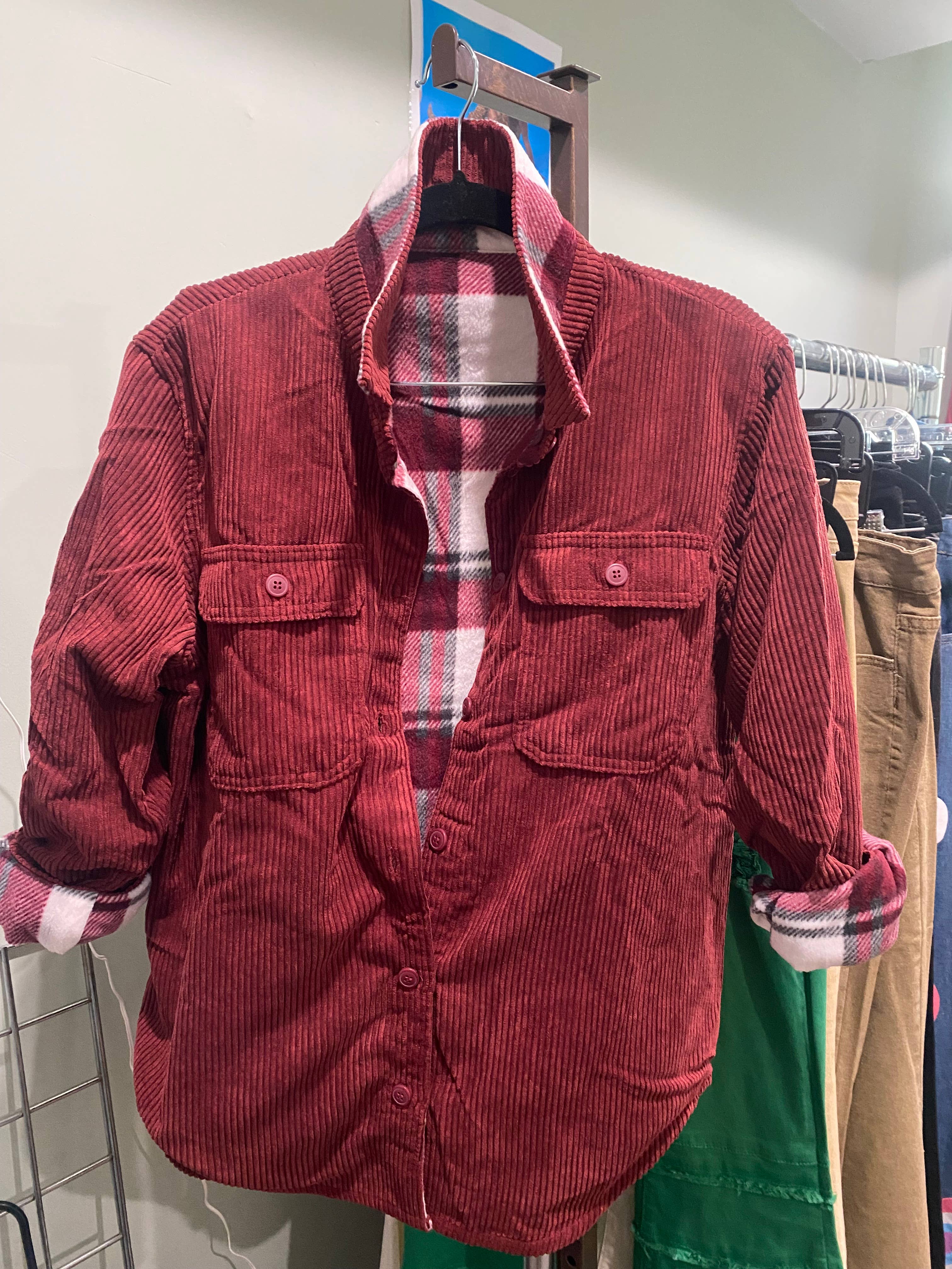 Plaid Flannel-Lined Corduroy Shacket