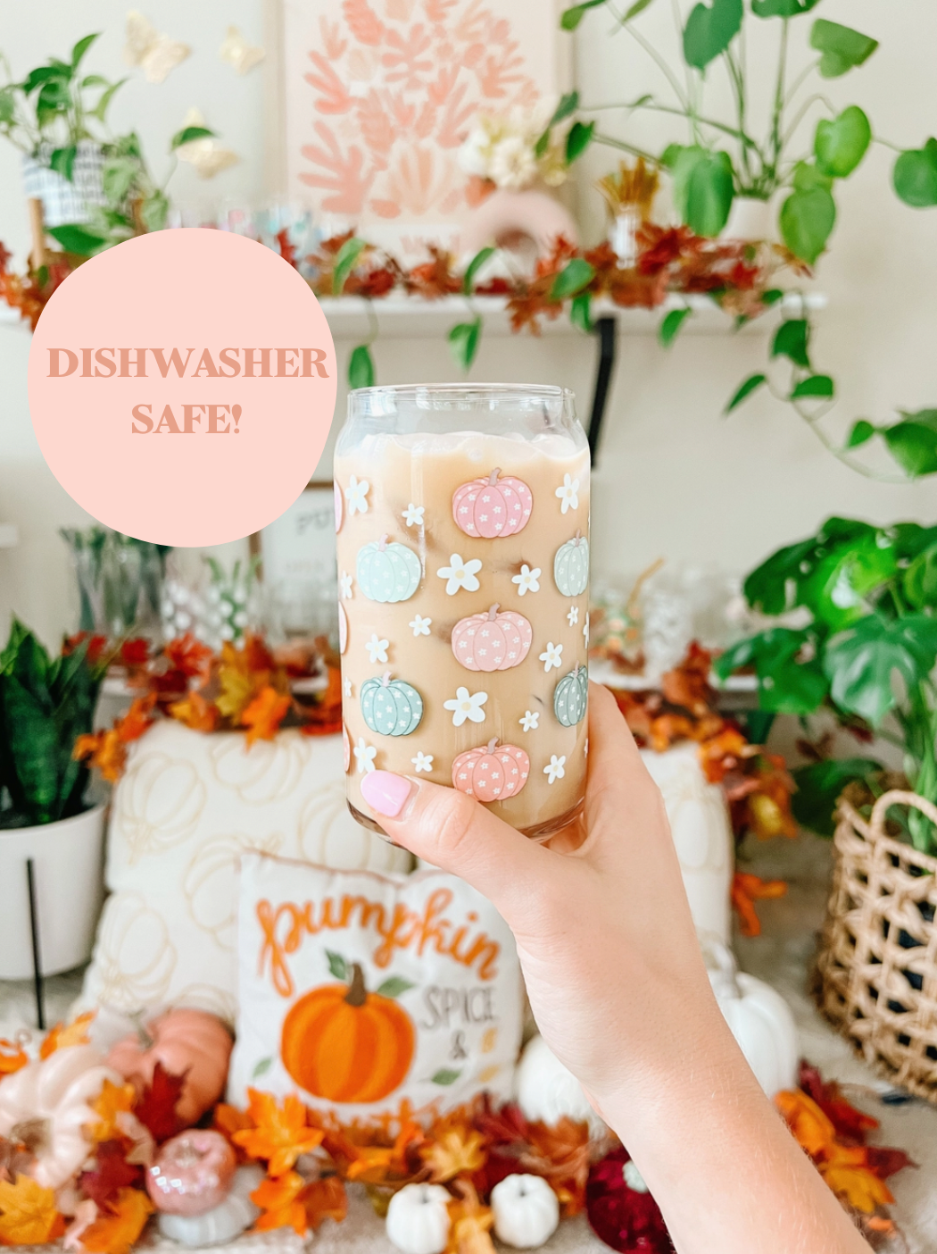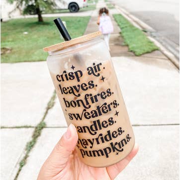 This is the perfect shaped glass for sipping your iced coffee, matcha latte, or any beverage out of. It is a beer can/soda can shape and can hold 16oz. The glass is durable and thick. Glass comes with white ghosts around the glass. The design is professionally adhered to the glass. Top rack dishwasher safe. ------ I am not responsible for items lost in the mail. You need to contact the post office to find tracking and submit as a lost item but I can do my best to guide you in the right direction to complete the process. If item arrives broken please reach out within 2 business days with a picture so I can file a claim and send a new one or refund you depending on quantity I have left.