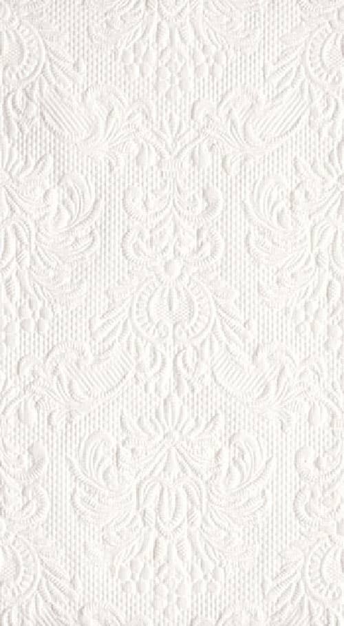 Holiday Paper Guest Towels Grandeur White Silver, Dimensions and Miscellaneous Information. - 16 per pkg: 3 ply - 8 1/4 x 4 1/2 in., Materials - Paper, Country of Origin - Germany, SKU - BF403695 . IHR, Ideal Home Range, Boston International napkins.