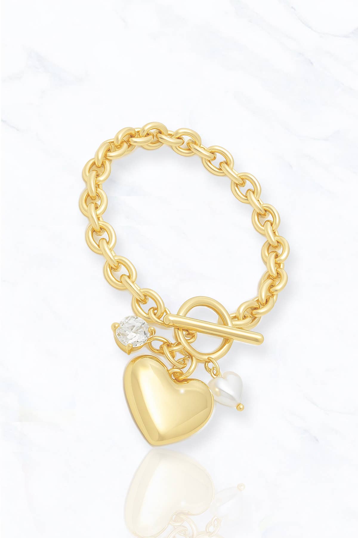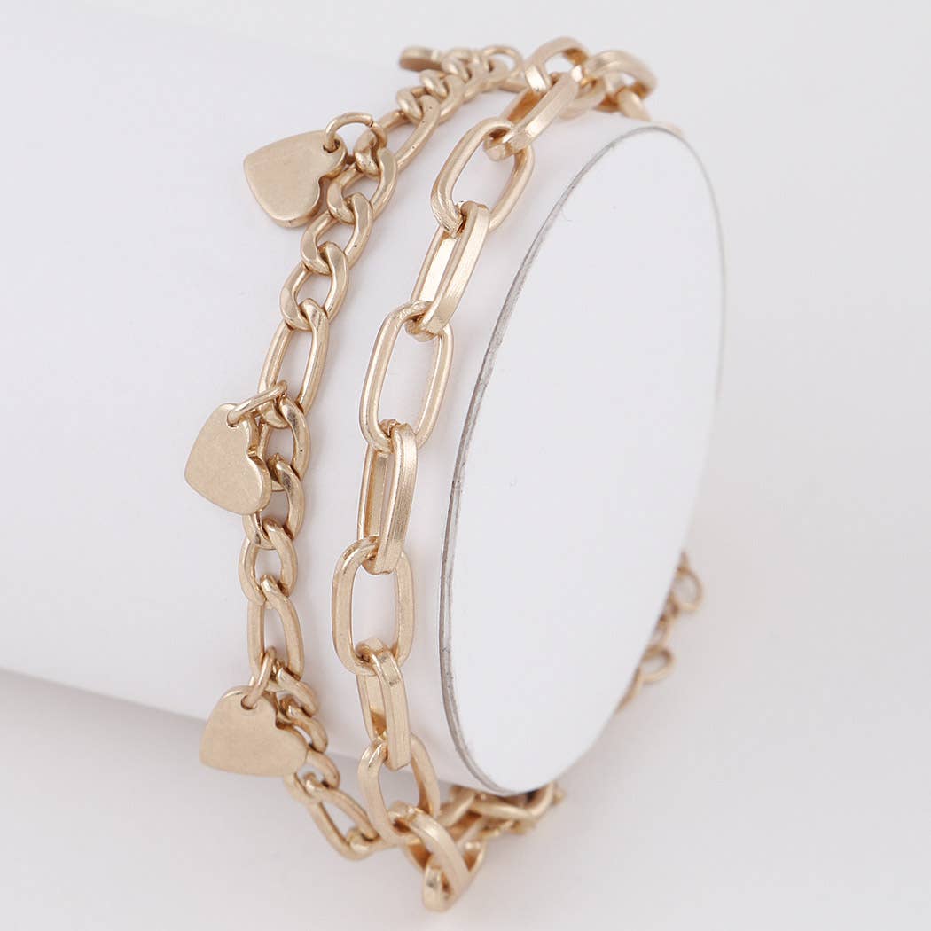 Star Heart Charm 18K Gold Plated Double Chain Bracelet - FGS