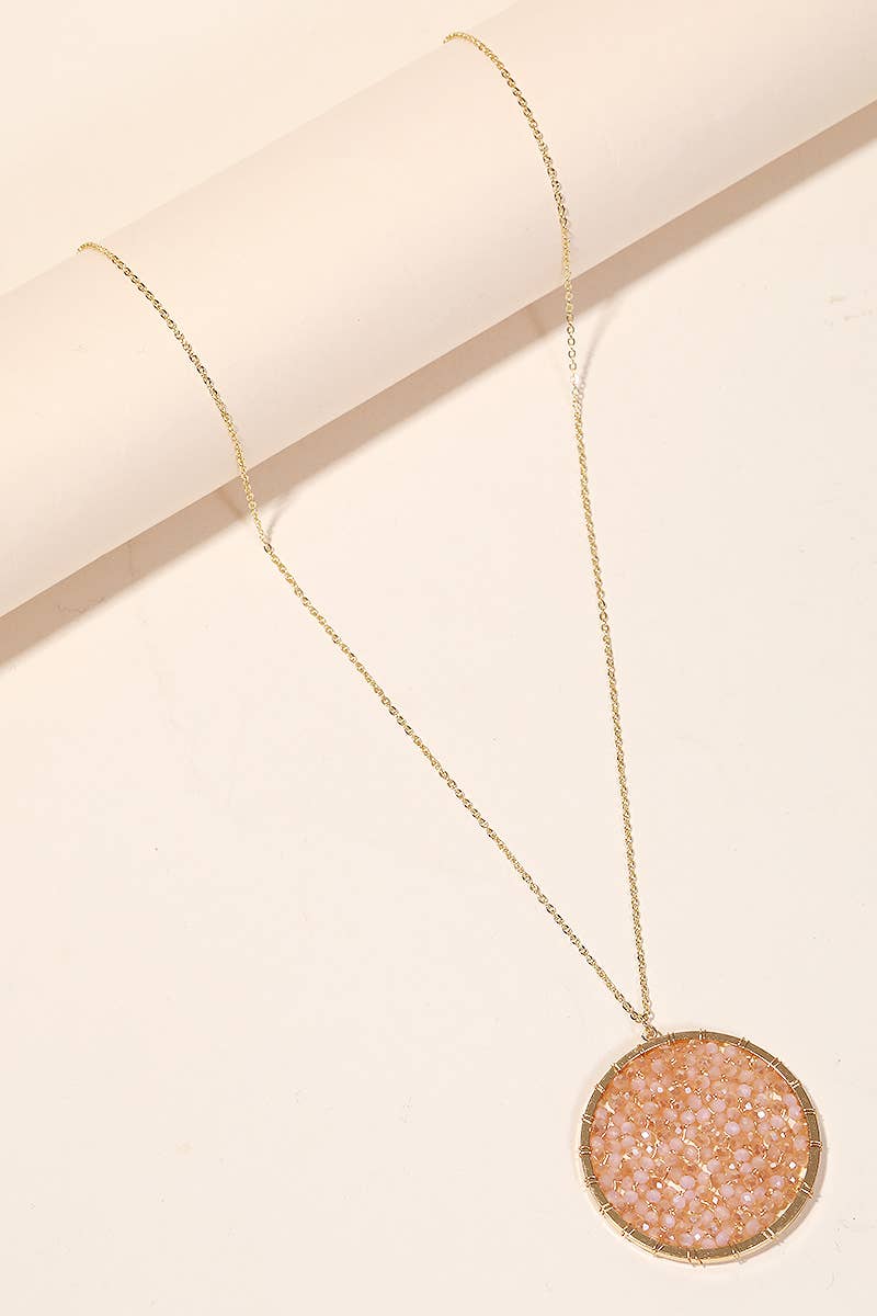 Circle natural stone charm short necklace with lobster clasp closure *Semi precious stone, Iron chain *Nickel/Lead Compliant *APPROX. L 16" EXT 3" Pendant L 0.5" W 0.5" 0.39oz *Imported