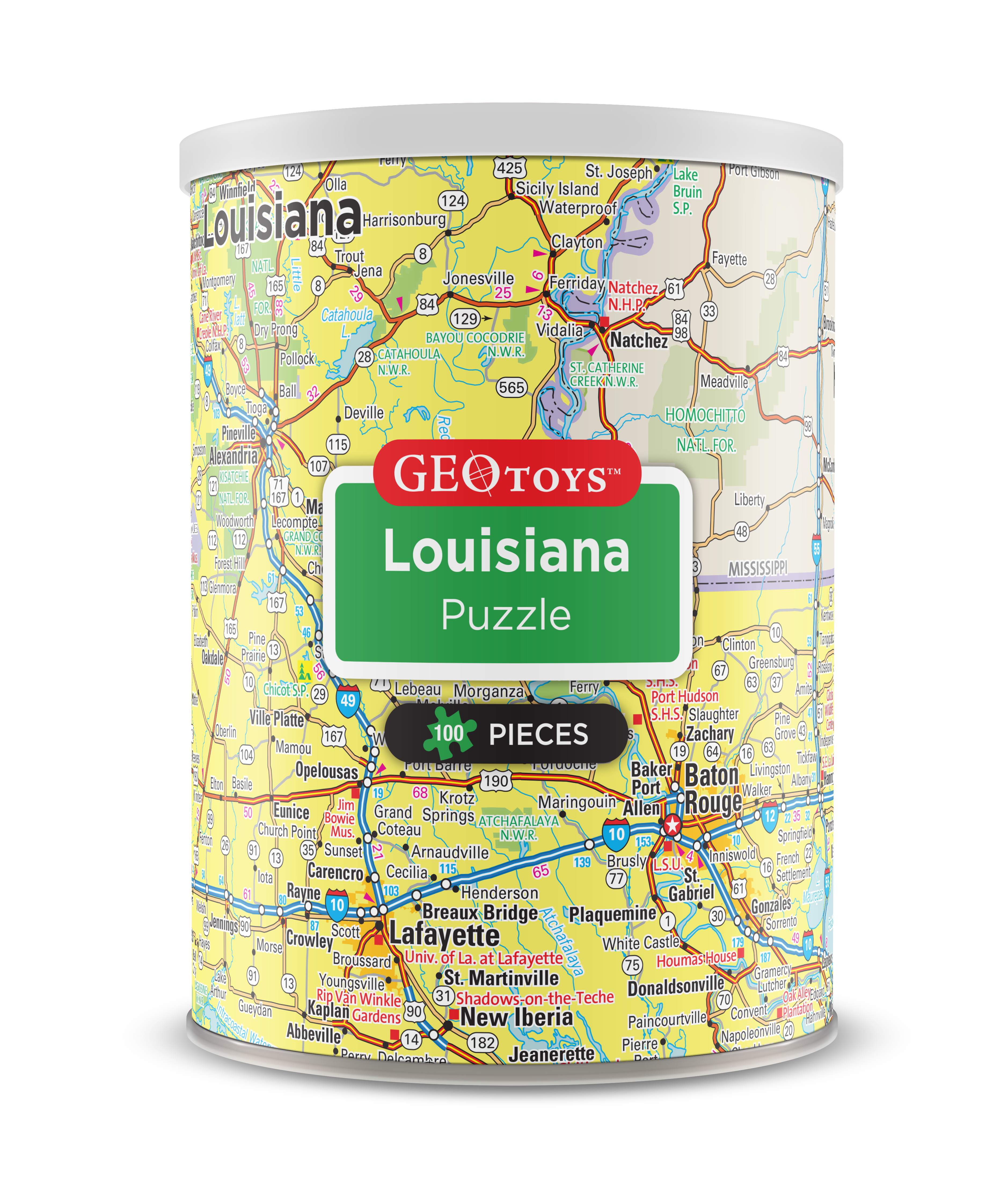 Let's take a tour of Mississippi! Our fun and detailed 100-pc mini puzzles give you a whole new perspective on your favorite states and cities. These 13 x 10 inch jigsaw puzzles are packaged in small, adorable cans, which make the perfect gift, stocking stuffer, or easy-to-pack vacation souvenir. An irresistible impulse buy, put them together on your table or refrigerator! -Easily stackable -Proven impulse buy -Cute canister packaging -Takes up very little shelf space
