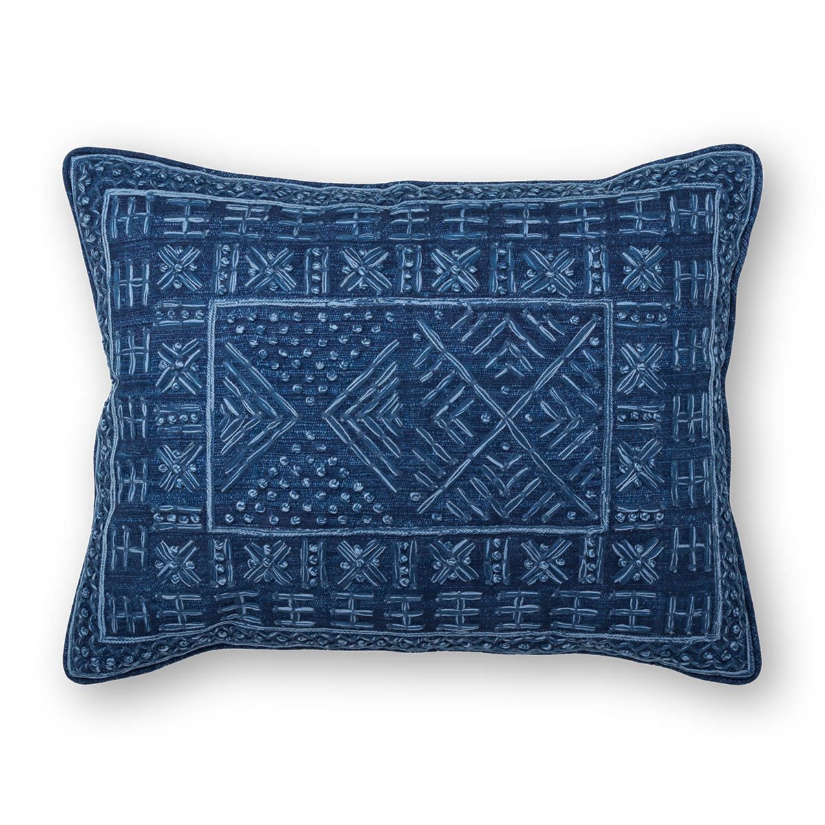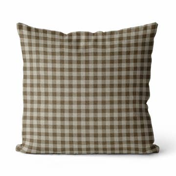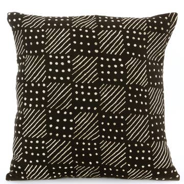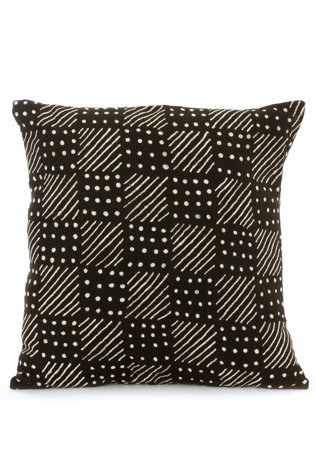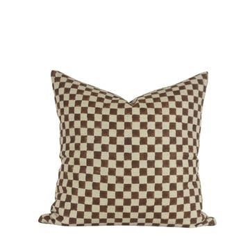 Modern meets rustic and present meets past when a classic checkerboard pattern intersects with an array of bold dots in the Sonder Linen Fabric. Artisans must first hand carve the pattern into blocks, then stamp the fabric. From India, the fabric is made of thick, soft, high-quality linen. *Pillow Insert Sold Separately*