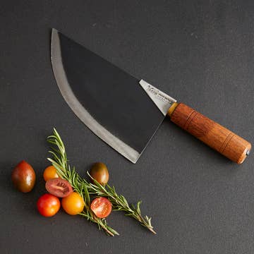 This knife was made in a small village in Thailand by talented artisans responsible for each part of this traditional knife. This all purpose knife is a great asset in any kitchen. Hand crafted from stainless steel and native Thai Pradu wood and presented in a bamboo gift box. Packaging size: 13" x 4.75" x 2”. Weight: 2.5lbs.