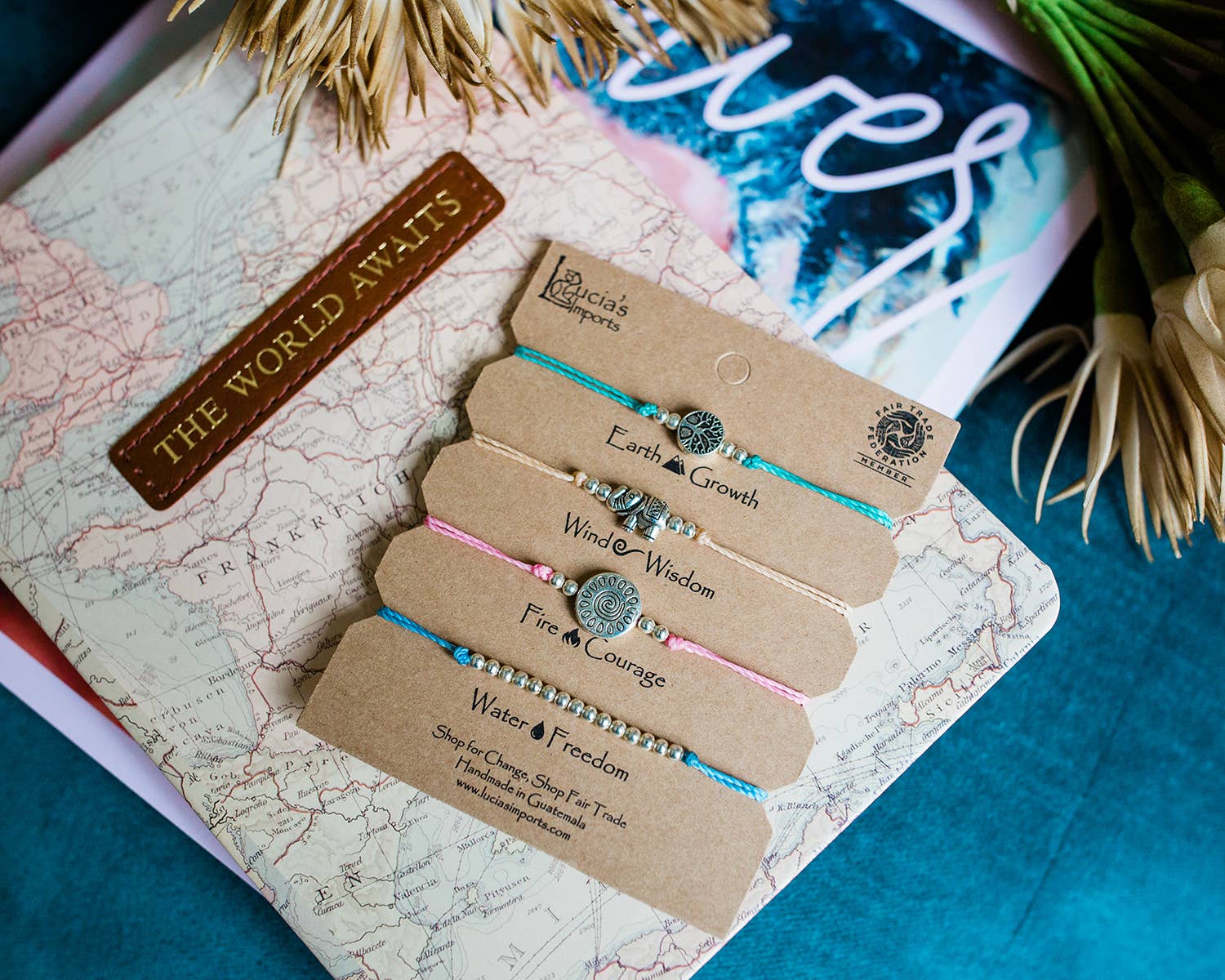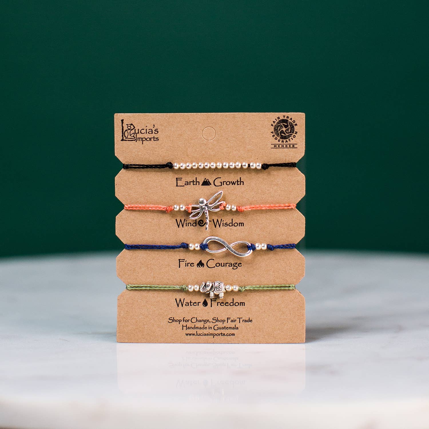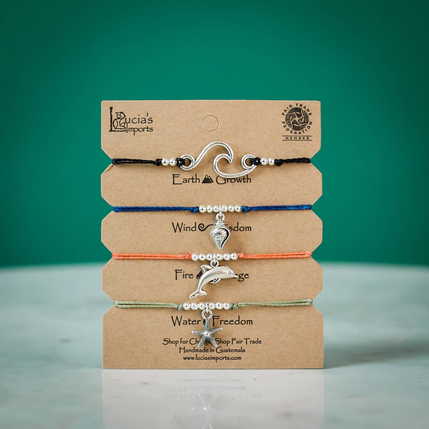 Did you know that dolphins can only hold their breath for about 7 minutes? This bracelet set reminds you to come up for air every now and again and relax. Each bracelet features a pull string slip knot closure to make them easy to wear. Stack them or wear it separately. Each purchase empowers Guatemalan artisans.