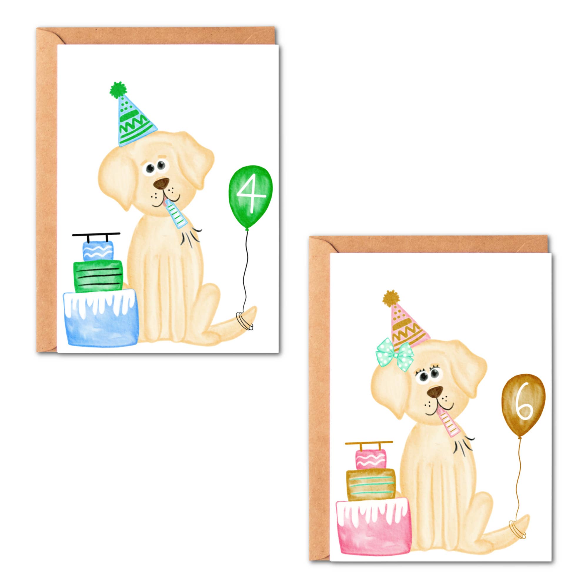 Original hand drawn, watercolor illustration. Professionally printed vertically in the USA on 110 lb smooth cardstock. A2 Size: 4.25" x 5.5" folded. Blank inside. Envelopes included. Cards come in clear, recyclable plastic sleeve. SINGLE CARDS: comes with an envelope enclosed in a clear, recyclable cellophane sleeve. SET OF 6: not packaged individually, comes with envelopes enclosed in a clear, recyclable cellophane sleeve. We do not print branding on our greeting cards. The design is printed on the front and the inside is blank.