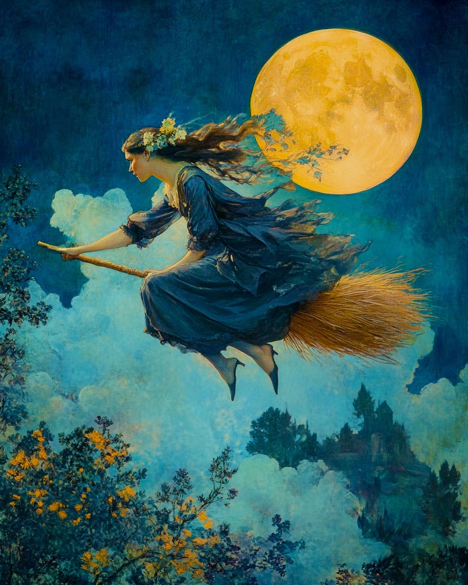 Art Nouveau Witch - Wall Art Print Mowbi's fantasy theme home decor wall art prints include an acid-free matte with a sturdy cardboard backing and are enclosed in a clear protective sleeve making them retail-ready. These unique gifts are powerful impulse buys driving consistent sales. Customers will always find something special to take home. Features: - 8" x 8" High Quality Print - 12" x 12" Acid Free Matte - Cardboard Backing Board - Retail Ready Protective Sleeve To see Mowbi more wall art prints: https://www.faire.com/brand/b_w7t5ycntrr Hint: Add a sticker to the backside with your physical address and your website address so they know where to get more. This piece focuses on Fantasy-themed decor, such as fairy art prints, wizards, fairy art paintings, witch art, and Vintage art. This artwork is typical of the arts and crafts style, which evolved into Art Nouveau and then Art Deco. It's similar to Alphonse Mucha, Gustav Klimt, and Antoni Gaudí.