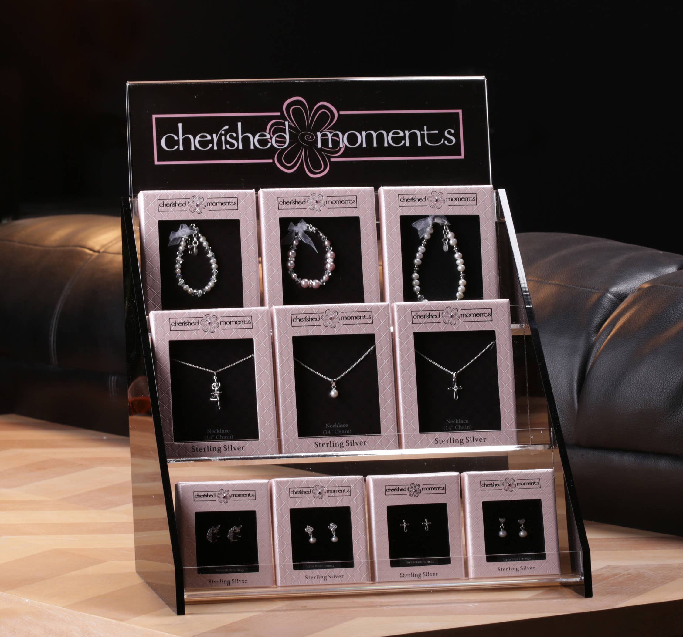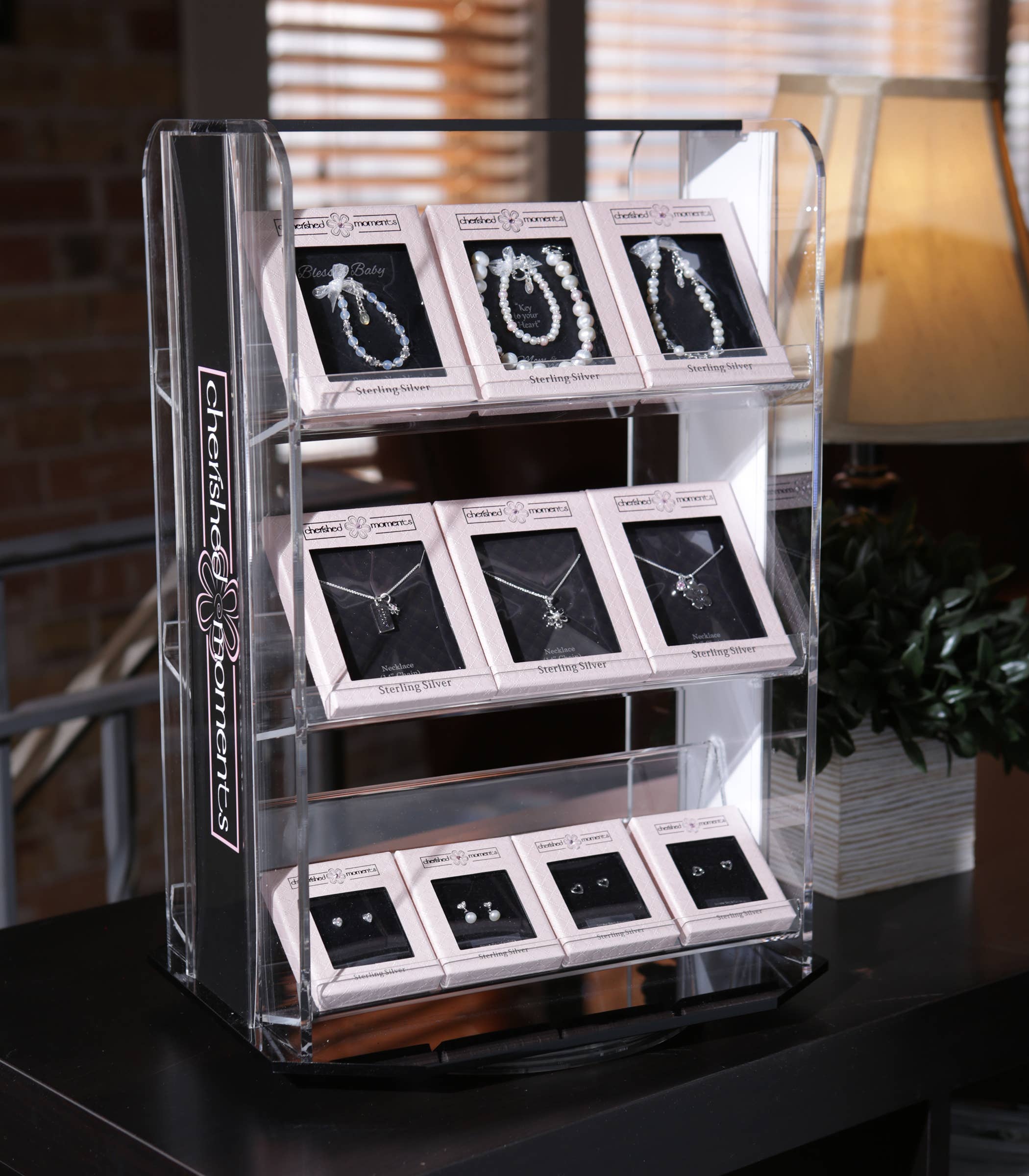 FREE with $300 order (Otherwise you will need to order the one listed at $30). NEW Acrylic jewelry display has 3 shelves enabling flexible product placement. This has been custom designed to fit our jewelry perfectly. This display enhances the beauty of the jewelry and has shown to increase sales in many stores. The display is 10 1/2" W x 13" H x 7.5" D using very little counter space to showcase your jewelry. (Fixture holds up to 36 units) Cherished Moments will provide a maximum of 2 Free Displays. For orders under $300 please order through the link below: https://www.faire.com/product/p_7bobvjvwp3