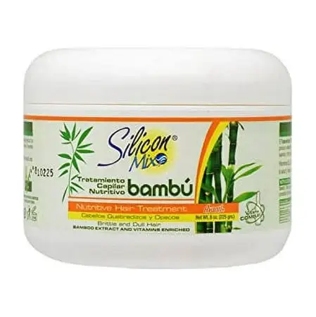 Silicon Mix Bambu Treatment is a deep conditioning treatment designed to revitalize and repair dry, damaged hair. Infused with bamboo extract and enriched with vitamins, it nourishes, strengthens, and restores moisture, leaving the hair soft, shiny, and healthy-looking. Keywords: Silicon Mix, Bambu Treatment, deep conditioner, bamboo extract, hair repair, nourishing, hair strengthening, dry hair, damaged hair, moisture restoration, healthy hair, shine, hair care, revitalizing treatment.
