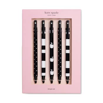 Materials black pindot, white pindot and black and white stripe with gold Sugar Paper logo and clip Dimensions 5.5 x .75 inches Ink Color Black Style No. DESK18 Simple, sleek, and ready to write your story down in inky black letters. Our popular felt pens are now available in a set of 3 including our new white pindot, black pindot and black and white stripe.