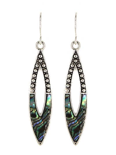 Abalone feathers vary in depths of tones, delicately hung in hammered gold-plated frames. These are lightweight show stoppers!