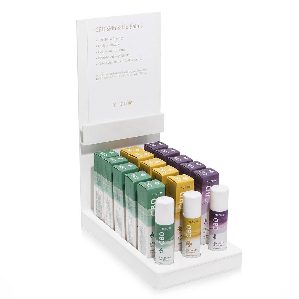 The creamiest, dreamiest lip balm ever! Formulated with mouth-watering organic cocoa and vanilla and 60mg of organic CBD for immediate comfort of dry, cracked lips. • Soothing and creamy texture • Delicious and calming organic cocoa and vanilla flavor • Microdosing to compliment regular hemp drops • Instant TLC for dry, cracked lips that will no doubt become your everyday favorite 100% THC-Free - 12 Pack Comes with a Free POP Display Box