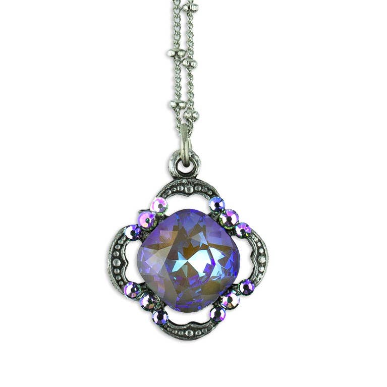 Faith meets elegance in this budded cross pendant. Featuring trileaf and milgrain metal work details, with hand enamel and brilliant crystal accents, this necklace is a stunning addition to any look. Made in the USA with lead/nickel free antiqued silver-plated white metal castings and rope chain. Lobster claw closure. Crystal Colors: clear crystal, black Enamel Color: black Measures Approximately: Pendant 1 7/8" L x 1 1/4 W; Chain 16-18" adjustable Style# NS3310BLK Easter, Gift, Christening, Baptism, Confirmation, Communion, Crosses, jewelry, jewellery, handmade, fashion, gift, accessory, fashion accessory, handmade jewelry, handmade gift, jewelry gift, designer jewelry, fashion jewelry, vintage inspired, filigree, heart pendant, love, faith, bridesmaid, religious