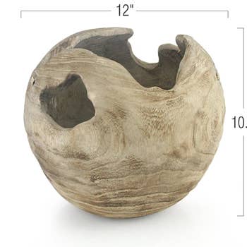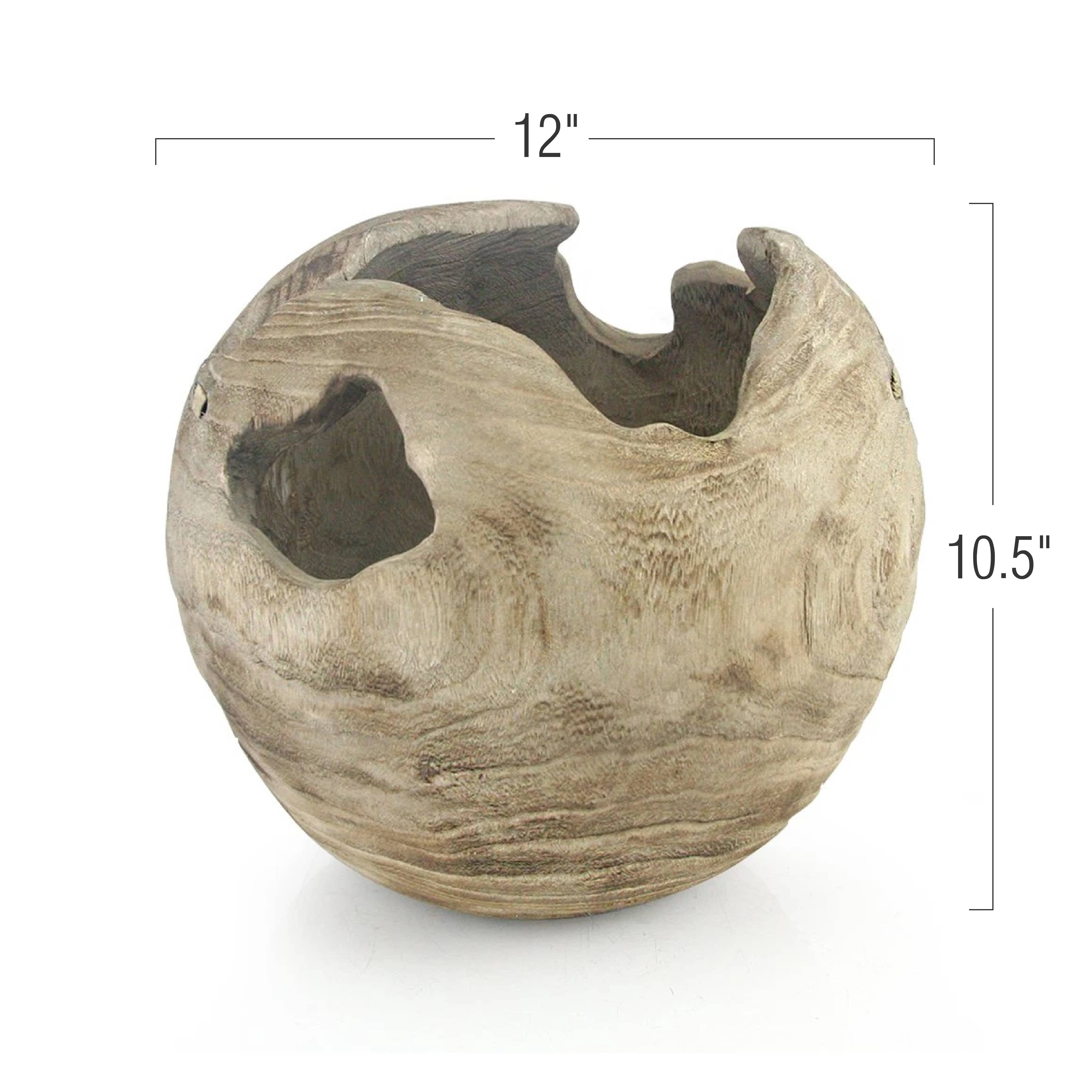 Nurture your inner peace at home by creating a zen garden (or an equivalent of it) using the 5.5-Inch Ball Teak Root Vase from Rainforest Bowls. This all-natural vase strikes the perfect balance between rustic and calm with its textured surface and weathered looks. Our 5.5-Inch Ball Teak Root Vase can be the perfect vessel for your zen garden display at home. Just fill it with some soil, add a layer of weathered and decorative rocks as the top layer, and then place an ornamental plant or some moss and you’re good to go. The wood vase will take care of the rest thanks to its already natural look and texture. Dimensions Top Diameter: 8-9 cm Height: 5.5” (14 cm) Features Made of sturdy Javanese teak wood, sustainably harvested from regulated plantations Hand-carved by artisans in Central Java and Bali, Indonesia Rustic chic centerpiece for any home Easy to wash and clean