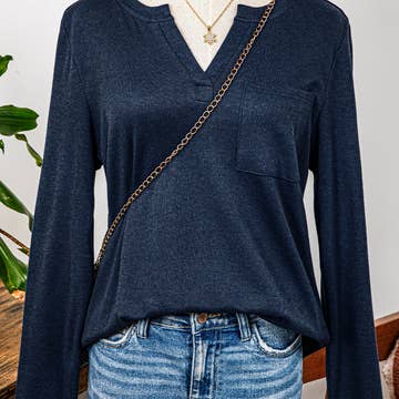 Wholesale Solid Color V Neck Long Sleeve Raw Edge Casual Loose T Shirt