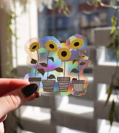 About our Suncatcher Ranbow Makers Bring some joyful rainbows into your home or car with our pretty Rainbow Maker Suncatcher Stickers! A small gift can make a big impact! These Suncatchers * have a gold star design * are made of light refracting clear vinyl, UV protected * need to be placed in a window with DIRECT sunlight for Rainbows to occur * are 5"x 4" * are easily removable and can be transferred to another window * come packaged attached to a 5”x 7” display card in a clear cello compostable sleeve These Sun Catchers are a great gift to yourself or for anyone in your life and can go into any room with DIRECT sunlight: baby rooms, bedrooms, playrooms, living room, kitchen, office, den, dining room, greenhouse, studio or car Rainbow Makers, Sun Catcher Decals, Wind Chimes, Unique Home Decor, Baby Room Decor, Crystal Designs, Prisms