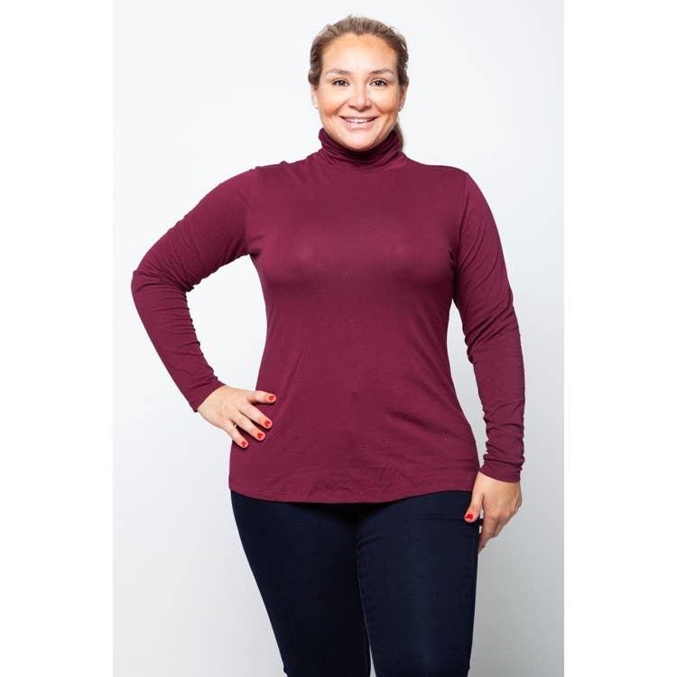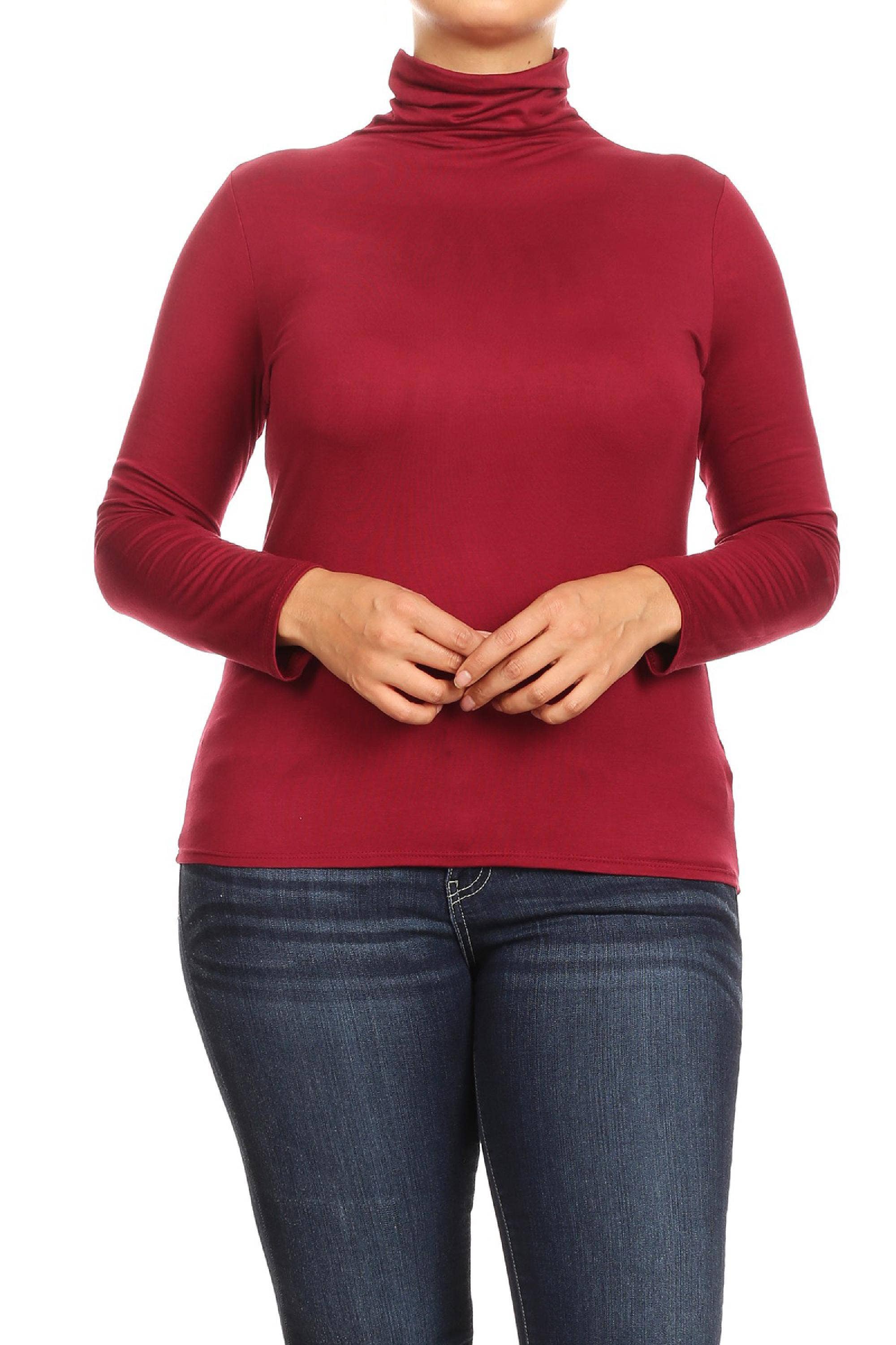 SKU: B747SD-BURG-1XL Made in United States Aesthetic: Casual and Classic Care Instructions: Machine wash Fabric: 95% Rayon 5%Spandex Fit: Junior and Missy Neckline: Turtleneck Occasion Theme: Everyday Occasion: Day Party Pattern: Solid Season: Fall/Winter Sleeve Length: Long Sleeve Product Language: English Weight: 136.08 g (4.8 oz) Dimensions: 22.9 x 20.3 x 2.5 cm (9 x 8 x 1 in)