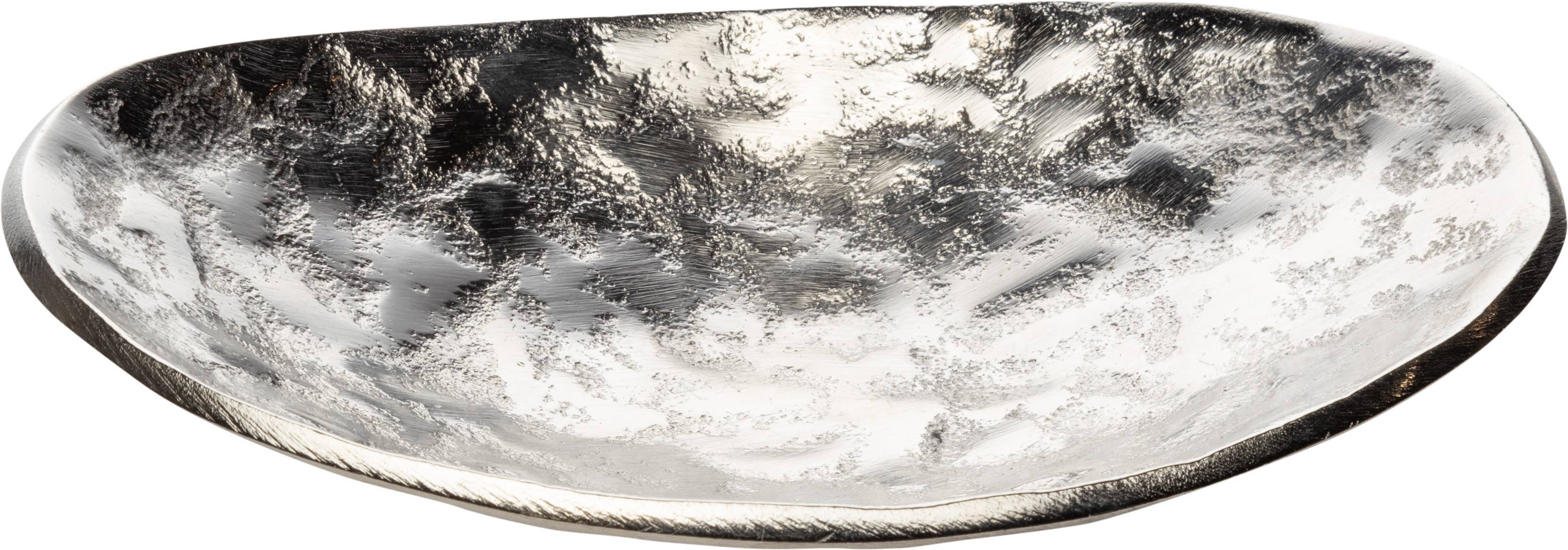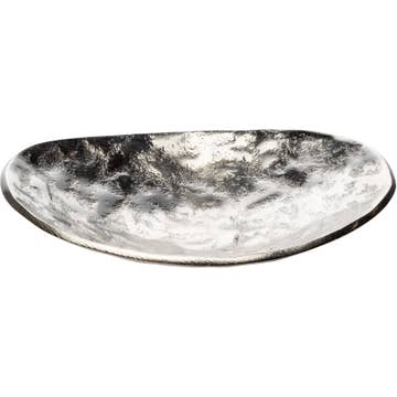 Arthur Court's sand-cast aluminum alloy is the perfect material for this Oyster shaped Catch-All Tray. The shiny luster of the tray mimics the inside of a real oyster to reflect the pretty objects you display on the tray or enhance the little treat tidbit As unique as the shell fish that inspired it's design, our Oyster Catch-All Tray is hand-crafted in Arthur Court's signature aluminum alloy. The design of an open oyster shell has plenty of room to hold glasses, keys or jewelry wherever you decide to display the tray. You can also serve tasty bites on it if you desire. We like it to hold extra picks on our seafood buffet table. Size: 6"L / 10"W / 1"T Care: Wash by hand with mild dish soap and dry immediately; do not put in dishwasher.