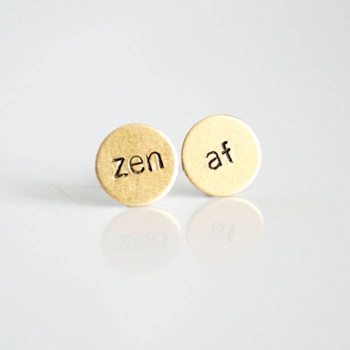 Hand Stamped, triangle shaped earrings that read "HOT MESS" because: emotions, hormones, shitty situations, and ego...amen. ☞All Grey Theory Mill earrings are made with Hypoallergenic, Surgical Grade A, Titanium Earring Wire. Titanium has no traces of nickel and is the premier metal for sensitive ears, which is why this metal is used for surgical instruments. ☞Earrings are NOT waterproof. Please remove earrings before swimming & bathing as water temperature and chlorine could compromise the bond between earring piece and post. ☞Raw brass will naturally patina in color over time. If you prefer a bright gold-brass color you can rub them with a jewelry polishing cloth or brighten with lemon juice. A sample of jewelry polishing cloth is included with all brass earring purchases.