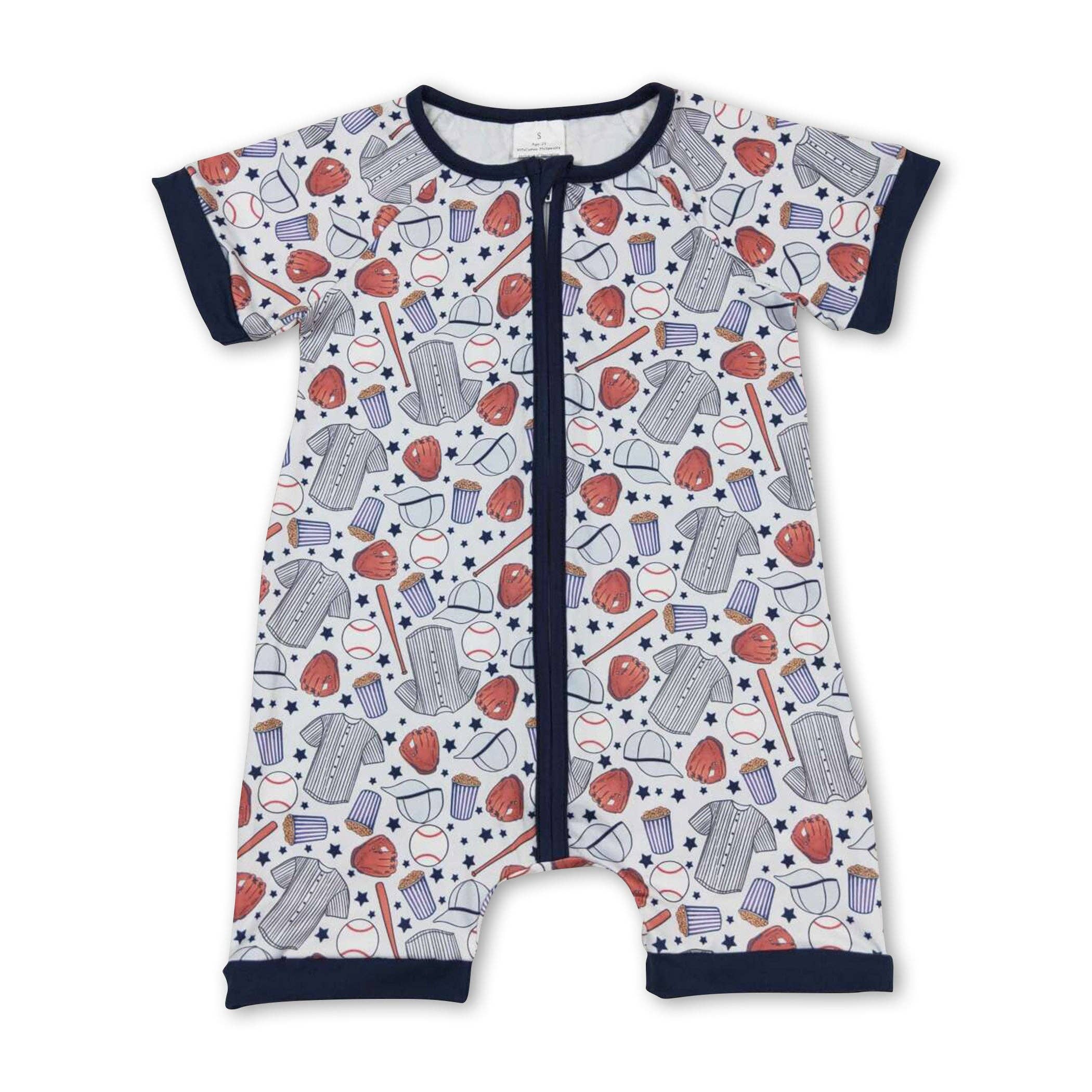 Sailboat Embroidered Knit Short Sleeve Baby Jumpsuit Organic