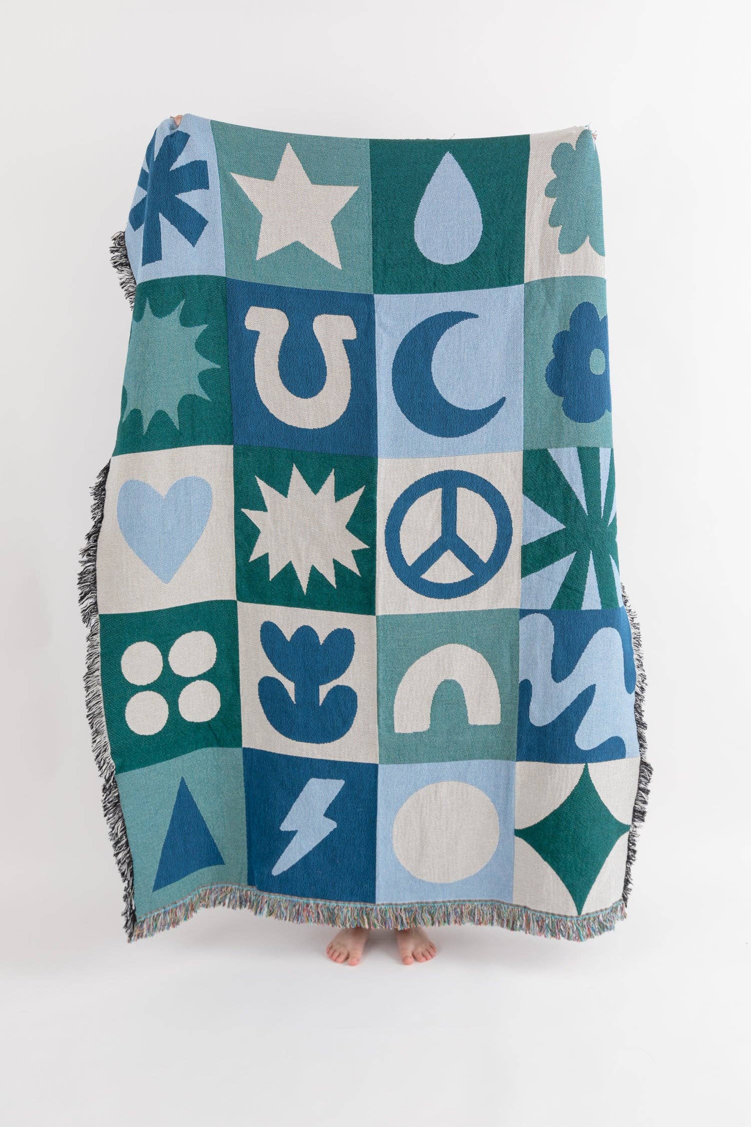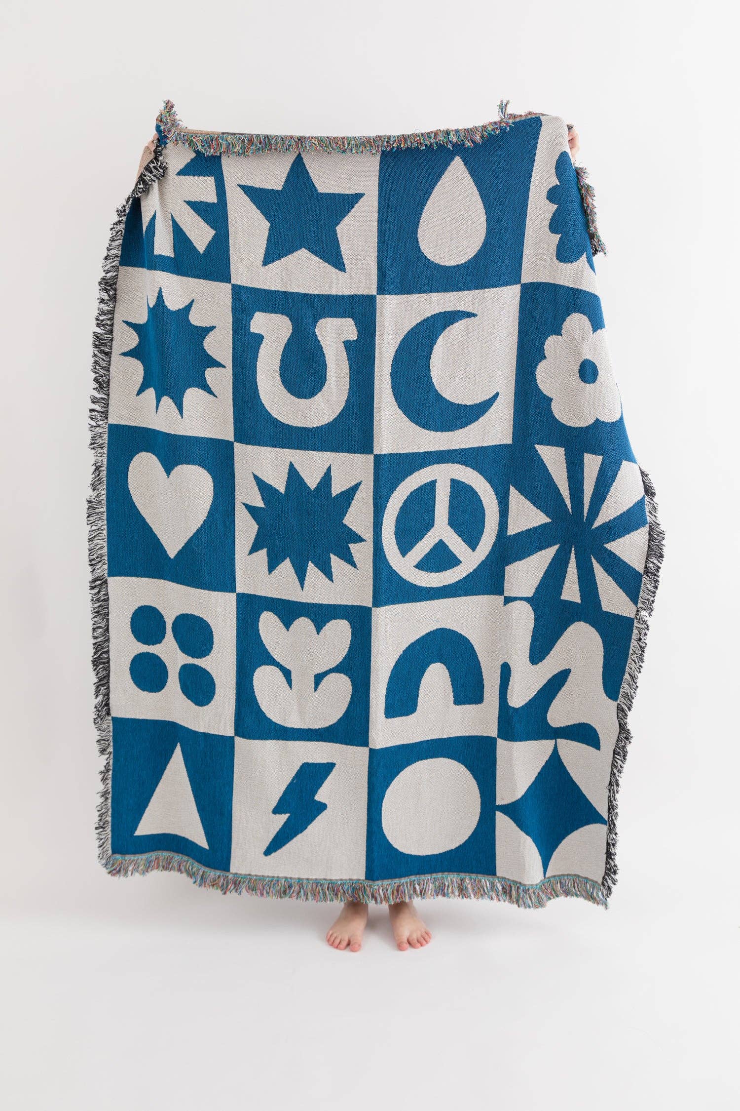 Featuring bold horse silhouettes, stars, and horseshoes, this soft throw brings a rustic, western feel to any space. Perfect for adding character to your sofa, bed, or favorite chair. * Sustainable Blend of Cotton & Recycled Cotton * 54"W x 72"H * Fringe Border * Lightweight * Machine Wash Cold; Tumble Dry Low * Made in the USA