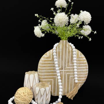 Gratitude is always the perfect accessory, and our Recycled Oyster Shell Blessing Beads remind you of all the pearls in your life. Display them in a sweetgrass basket, drape them on your mantle, or give a strand as welcome beads for new homeowners or as a newlywed gift. These handmade blessing beads are approximately 11” in length with a shell pendant that measures approximately 2" x 3.5". We have framed the recycled oyster shell pendant by classic wooden beads as a sweet reminder of nature’s gifts and the beauty in simplicity.