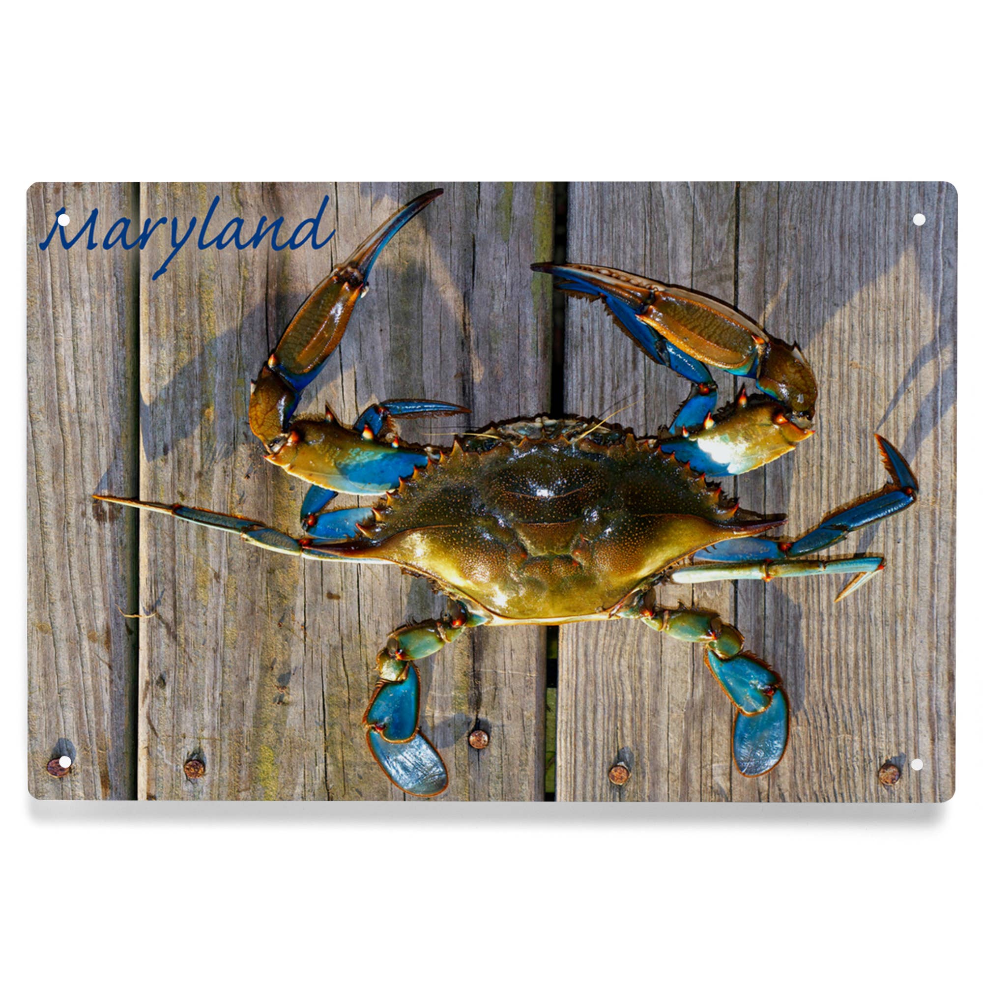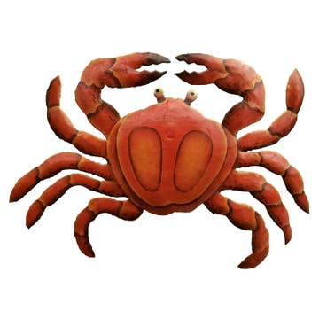 Giant Blue Claw Crab is hand-painted. This metal wall crab looks great in a nautical-themed kitchen. Size 32 x 26 x 4".