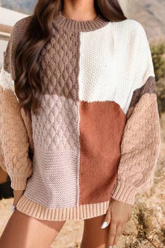 Wholesale Loose Button Patchwork Contrasting Sweater