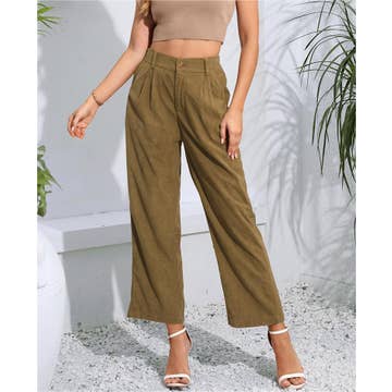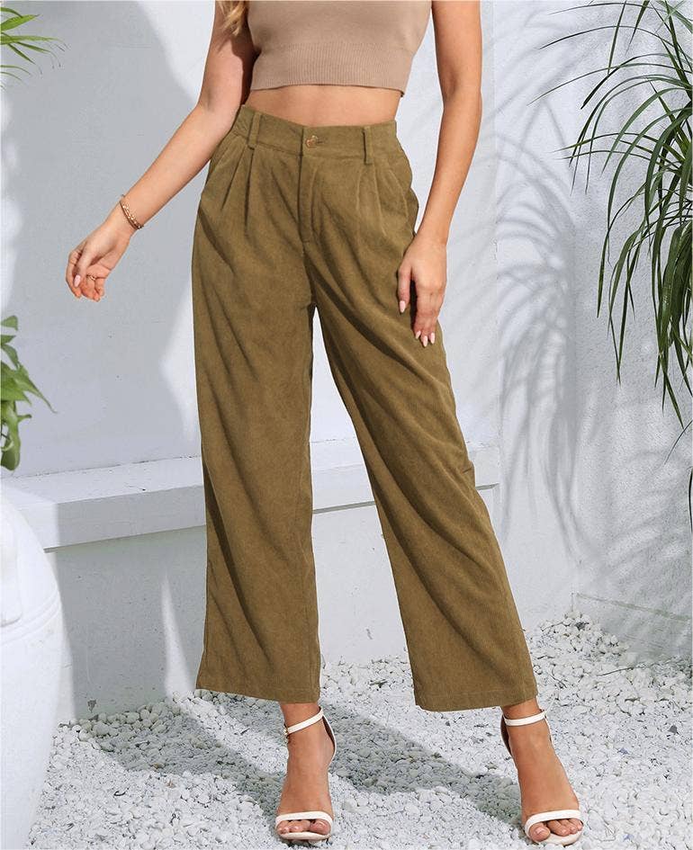 SOLID COLOR CORDUROY HIGH WAISTED CASUAL PANTS