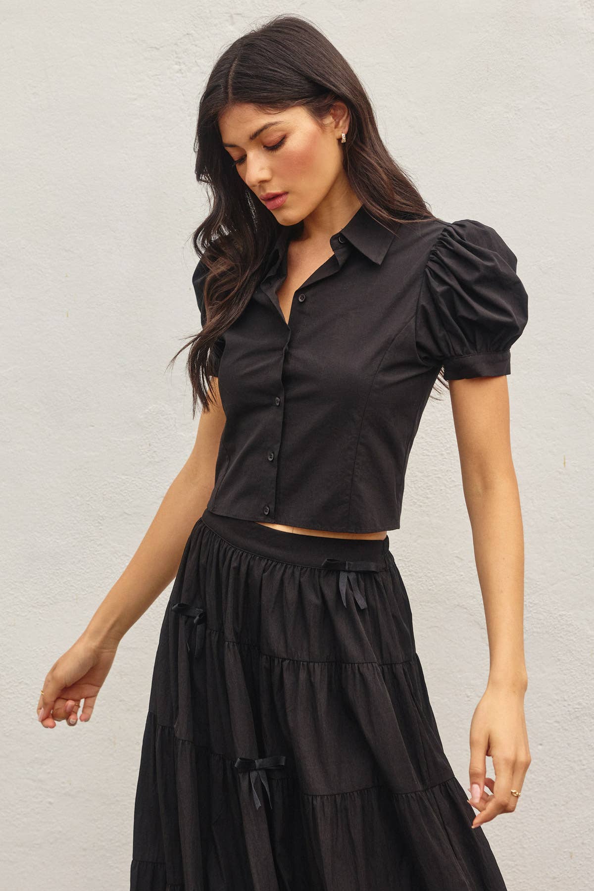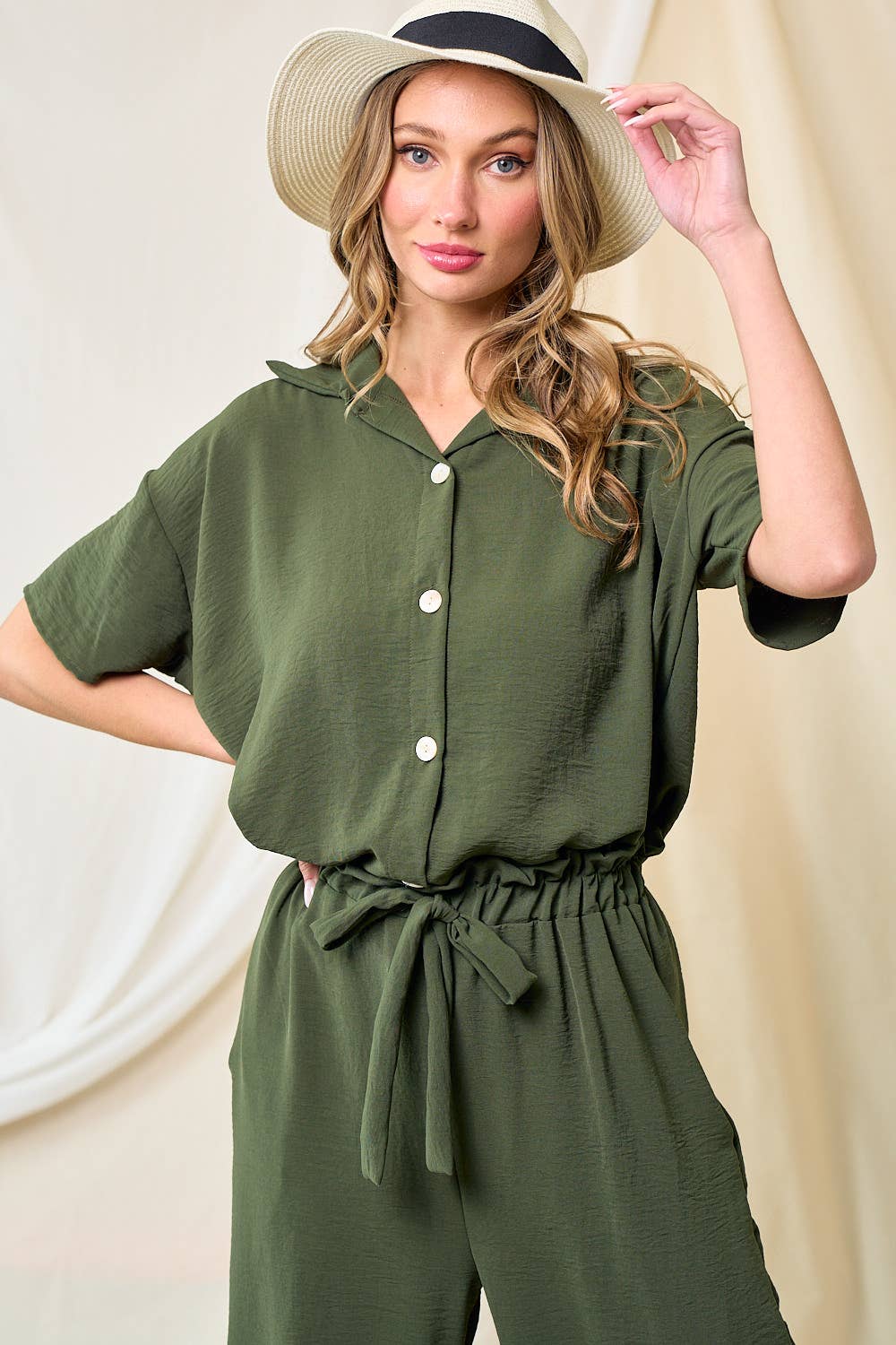 SHORT DOLMAN SLEEVE BUTTON DOWN SIDE KNOT ETAIL POPLIN SHIRT FABRIC: POPLIN 60% COTTON 35% POLYESTER 5% SPANDEX - new arrivals, new arrivals 2025, active basic, active usa, blouse, shirt, button down shirt, waist tie, office wear, work wear, formal, spring, essential, must have
