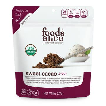Made in United States Diet: Dairy-free, Gluten-free, Grain-free, Kosher, Nut-free, Organic, Soy-free, Vegan, and Vegetarian Ingredients: Organic cacao beans, organic cane sugar, organic cacao butter Production: Fair trade and Non-GMO Shelf life: 12–24 months Storage: Shelf-stable Weight: 4.54 kg (10 lb) Production: Ethically sourced